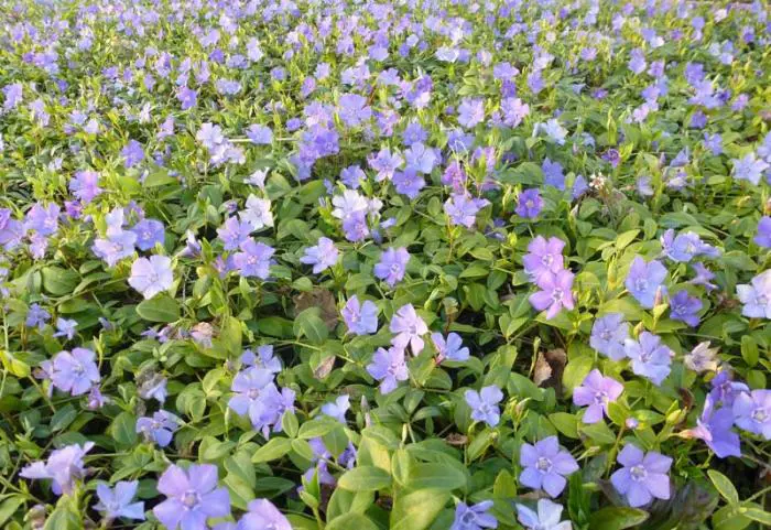 Vinca minor 'La Grave' is een uitstekende tuinplant voor moeilijke plaatsen. Hij vormt een groenblijvende en dichtbegroeide bodembedekker die in het voorjaar met talrijke kleine violetblauwe sterrenbloemen bloeit.
