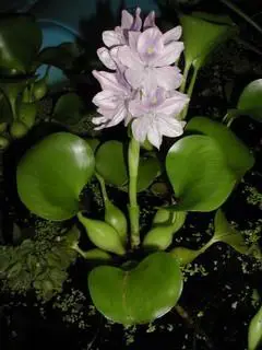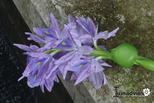Eichhornia crassipes is een waterplant met lila bloemen die op de hyacint lijken.
