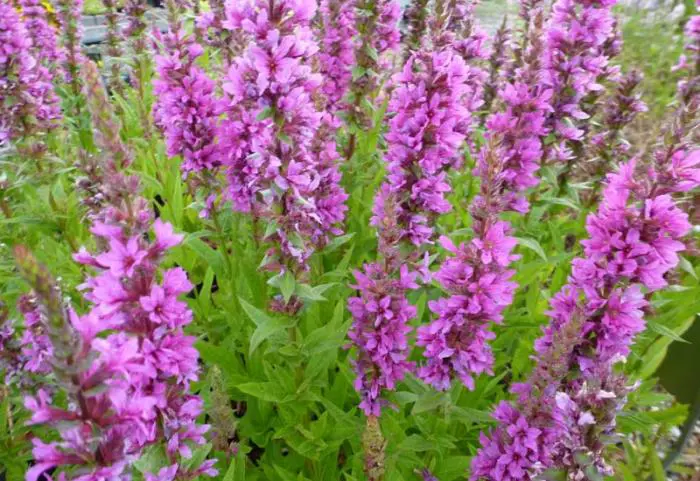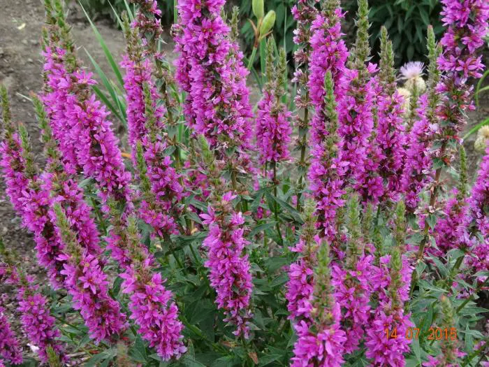 Lythrum salicaria 'Zigeunerblut' is een rijkbloeiende cultivar met een hoge goed gevulde bloeistengel.