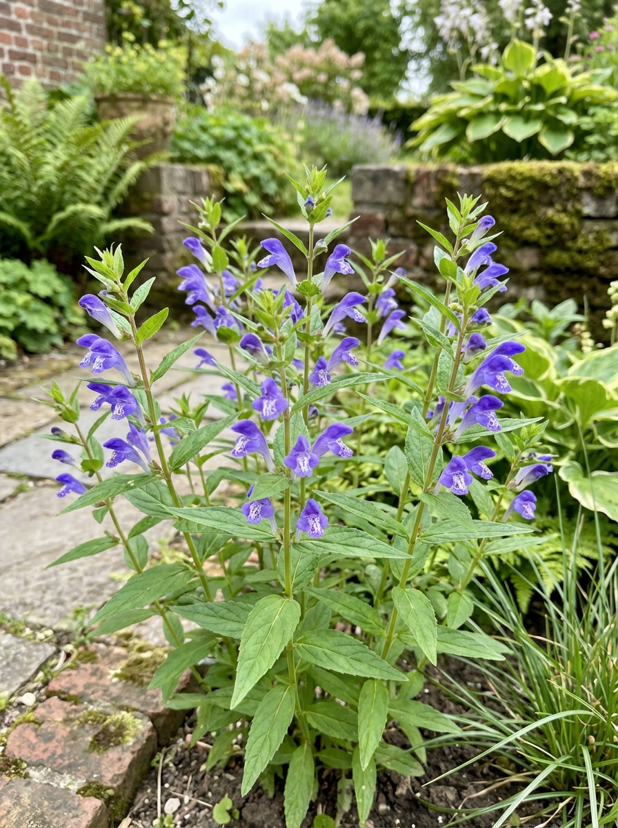 De bloemen zijn buis-, trompetvormig waarvan de blauwe tot violette bloemblaadjes, met fijne haartjes bedekt zijn. De onderlip is breed en wit met paarse stippen.