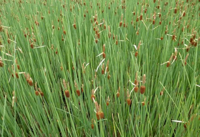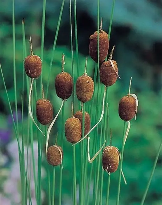 Typha minima is een laagblijvende lisdodde van 45cm hoog, kan in kleine kunstvijvers met een waterdiepte van 10cm, grasachtige bladeren, met zijn opvallende fluwelen bruine kolven die op sigaren lijken, in juli/augustus.