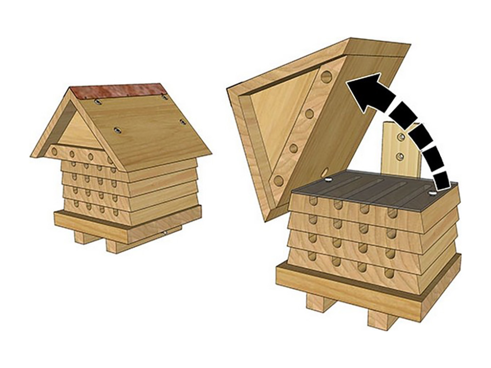 Deze solitaire bijenkast is gemaakt uit kwalitatief hout afkomstig uit duurzaam beheerde bossen. Geschikt voor onder andere de gehoornde metselbij, de bladsnijderbij en andere soorten solitaire bijen. Iedere laag van de kast kan geopend worden ter inspectie. Zo kom je meer te weten over de bijen en kan je ook zien hoe ze leven.