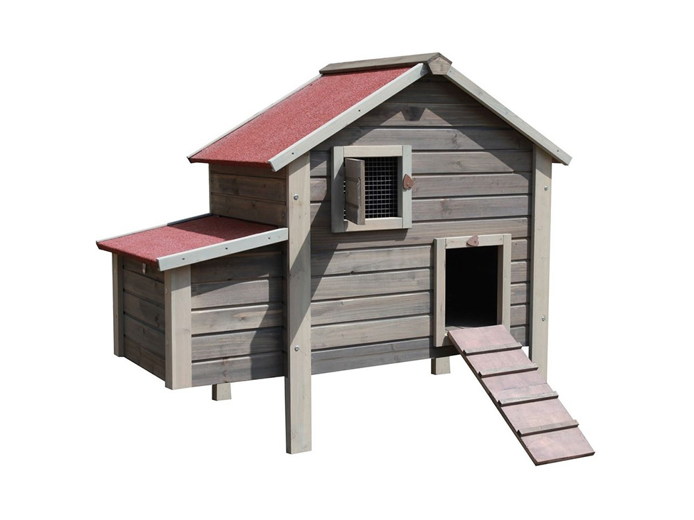 Dit kippenhok is ontworpen met een ventilatieraam aan de voorkant om verse lucht naar binnen te laten. Het legnest heeft een dak dat geopend kan worden voor het rapen van de eieren. De voordeur kan je van buitenaf afsluiten door een draaiende beweging van de opstapladder. Het is gemaakt van grenenhout wat staat voor stevigheid en duurzaamheid en het is eenvoudig te monteren.
