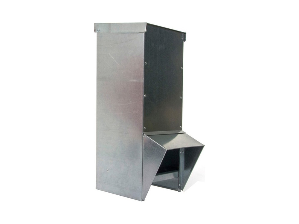 Met deze gegalvaniseerde voederbak voor kippen, fazanten, eenden en ander pluimvee hoef je niet elke dag te gaan voederen. Bovendien blijft het voeder mooi droog en wordt morsen tot een minimum beperkt zodat ook de overlast van vervelende knaagdieren achterwege blijft.