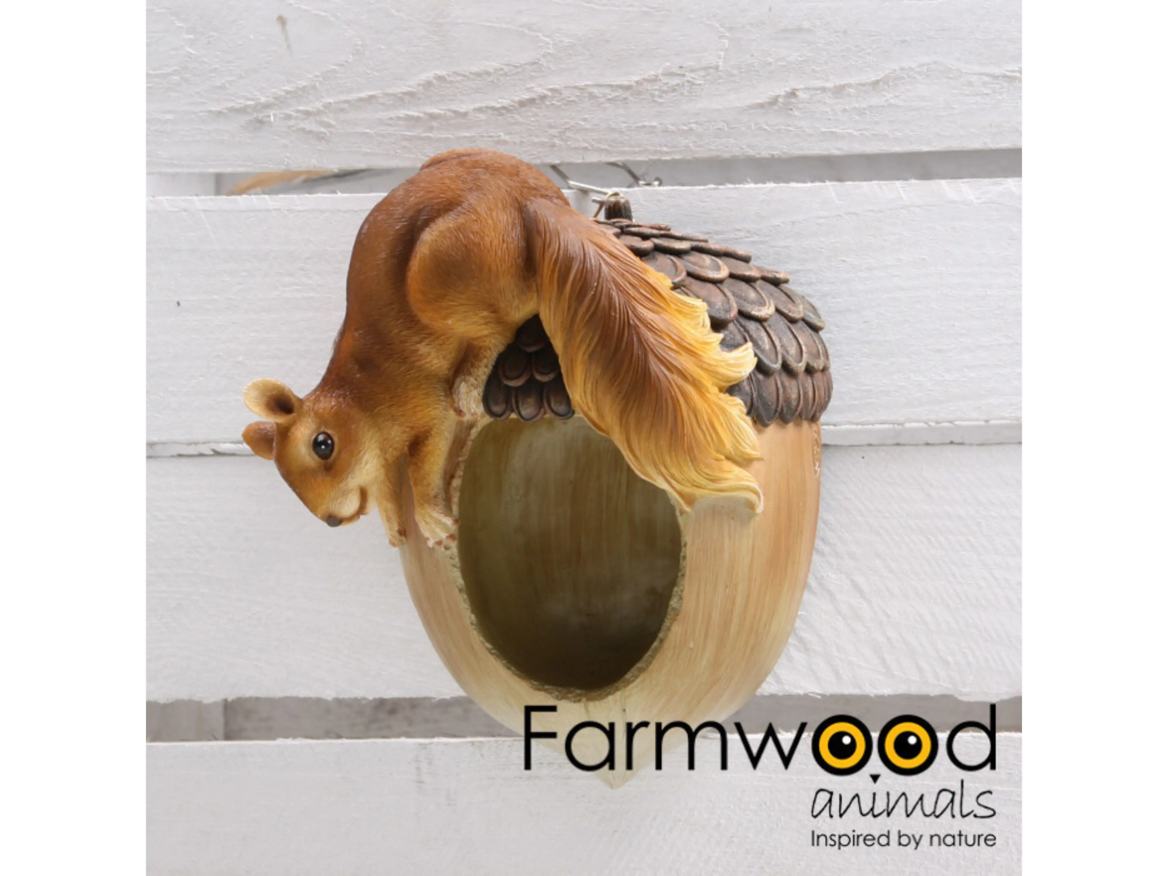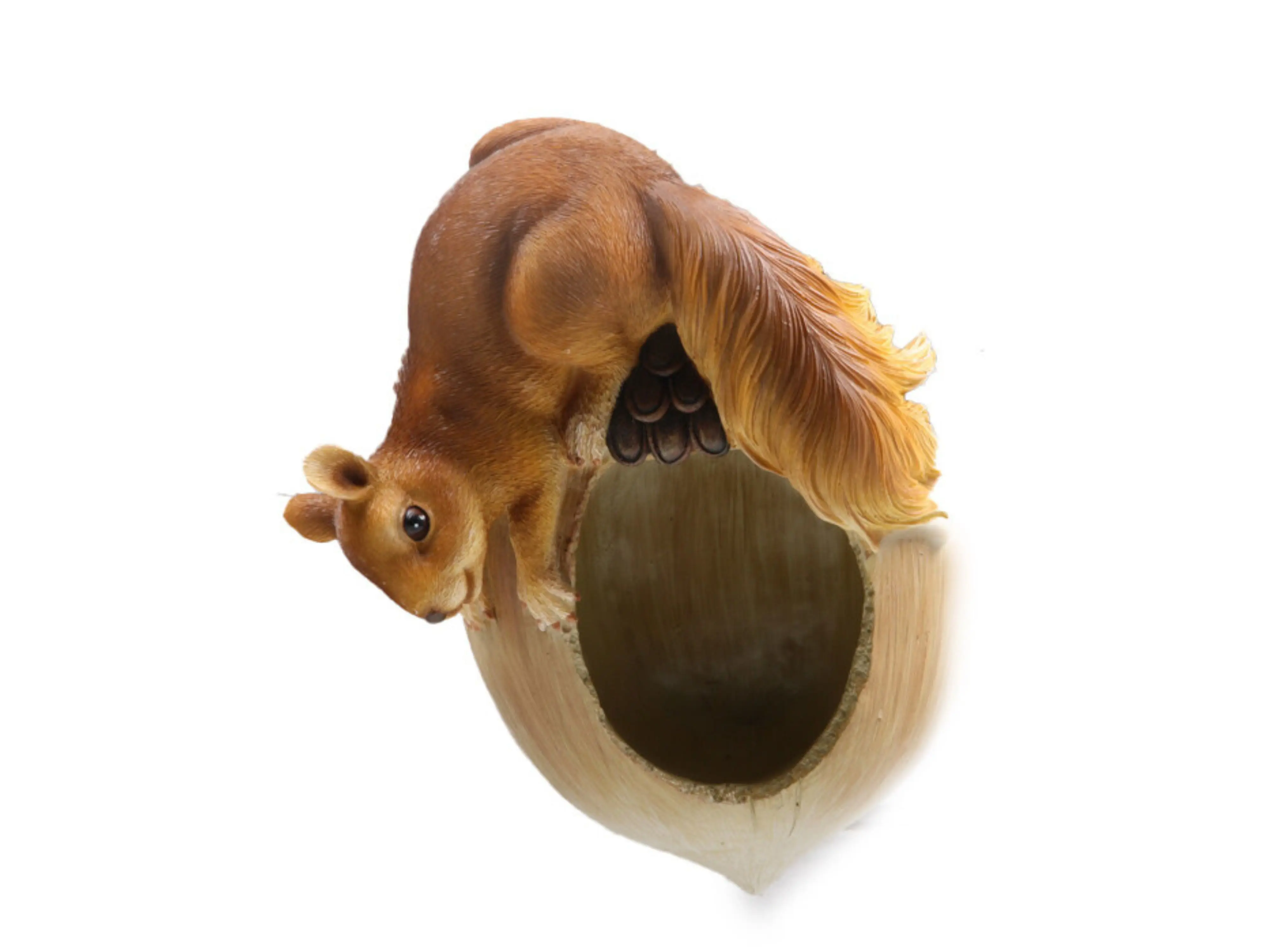 Gemaakt van duurzaam en weerbestendig materiaal, biedt deze voederschaal een veilige plek voor vogelvoer, noten of zaden. Het realistische design van een eikel en eekhoorn maakt het een echte blikvanger en een favoriet onder natuurliefhebbers.