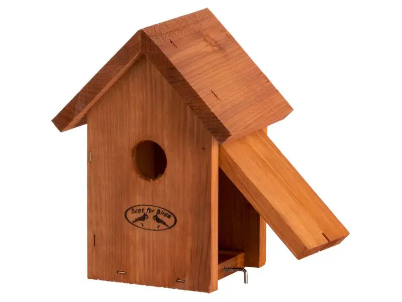 De nestkast is aan de zijkant voorzien van een deurtje om te nestkast eenvoudig te kunnen reinigen of te controleren.