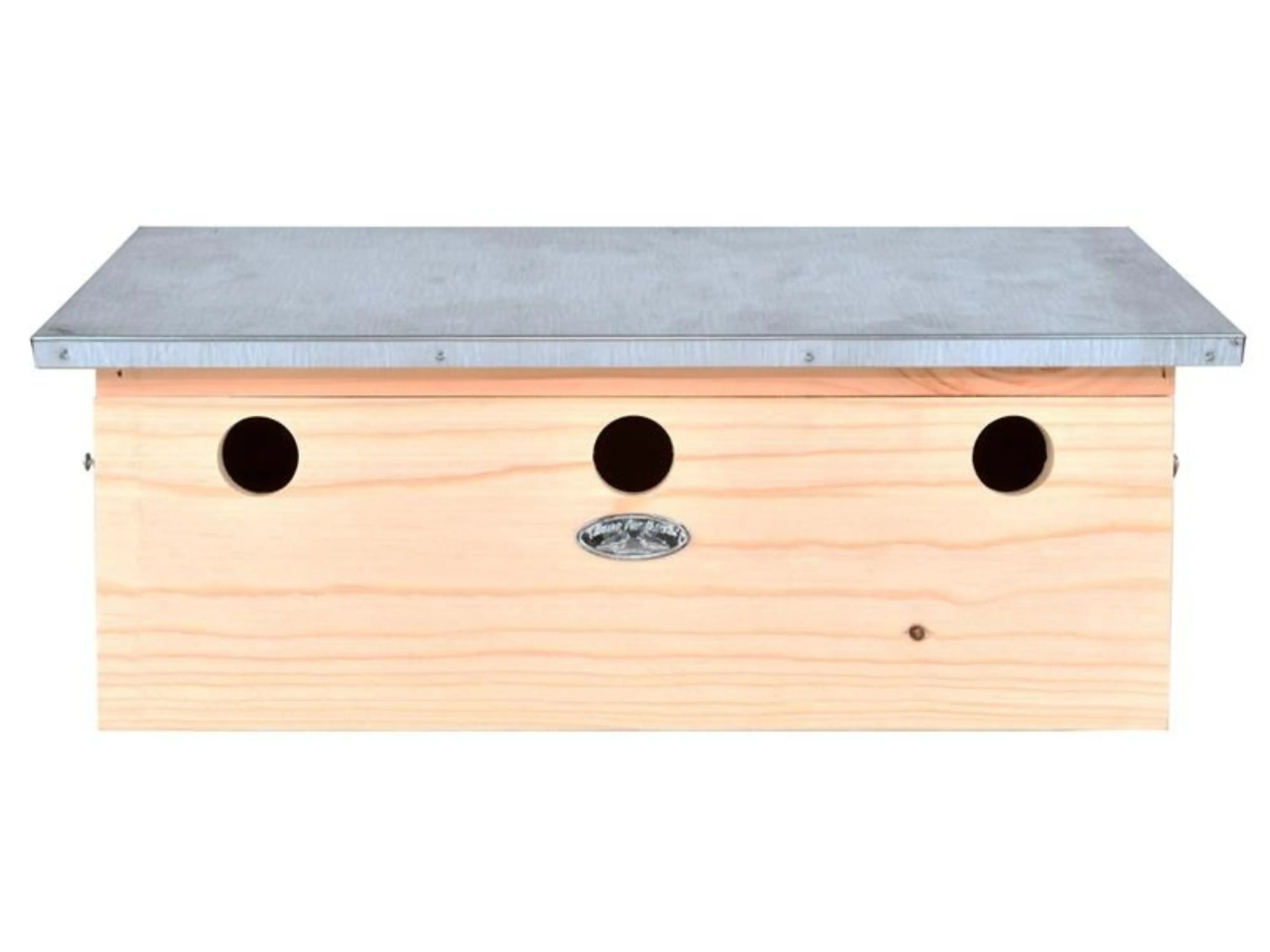 Eén nestkast met 3 verschillende kamers, het ideale onderkomen voor een mussenfamilie. Huismussen zijn koloniebroeders en houden ervan in paartjes bij elkaar te wonen.