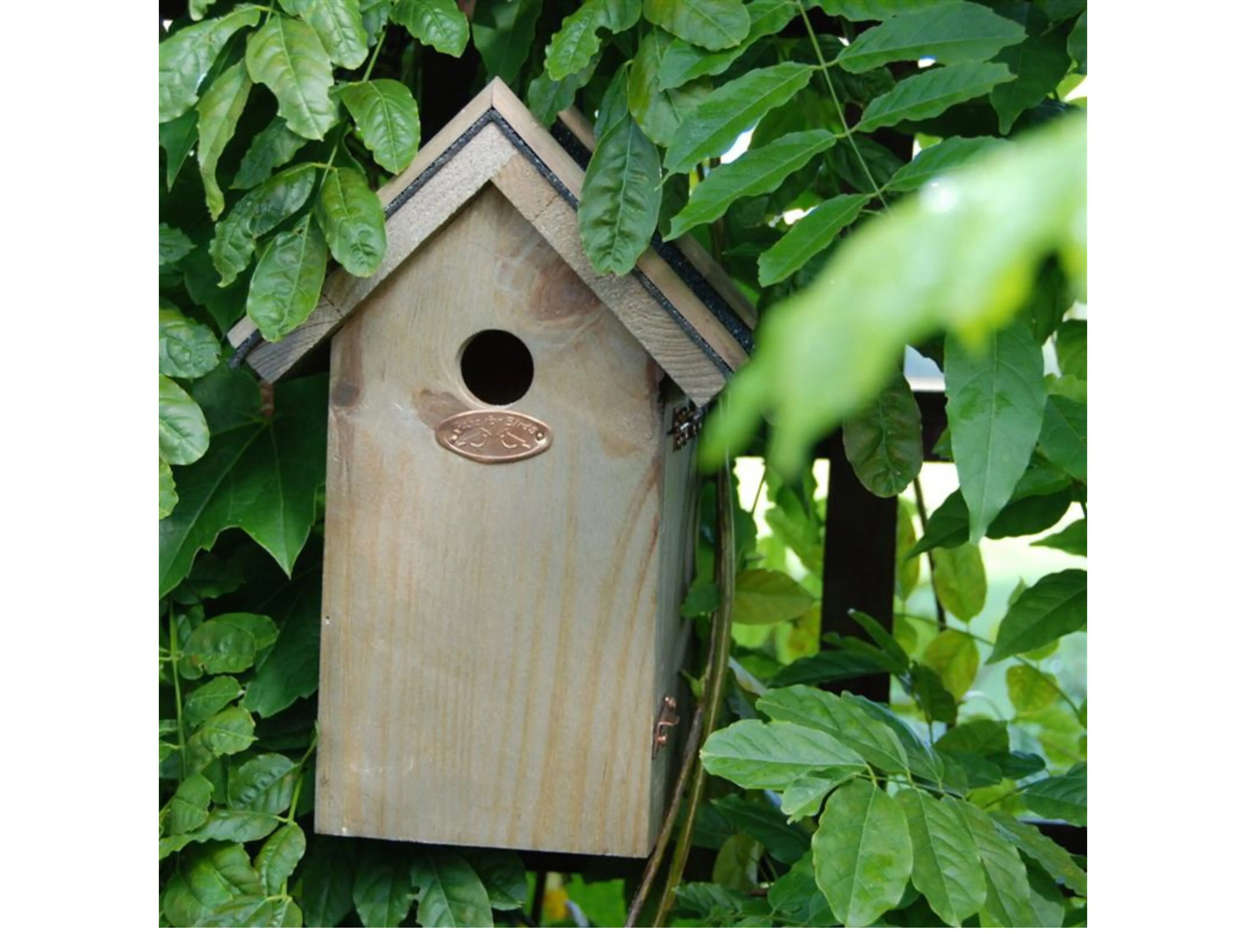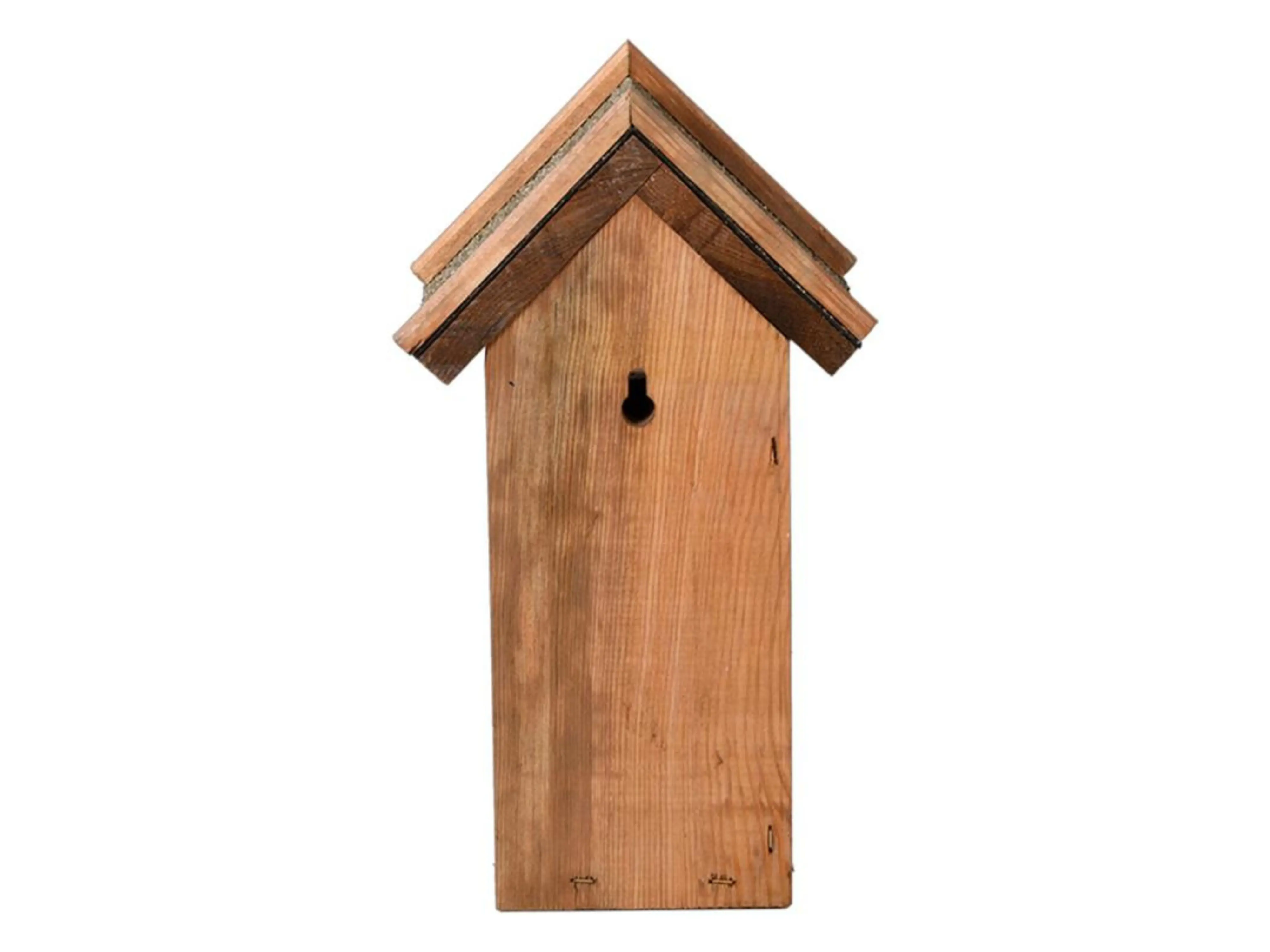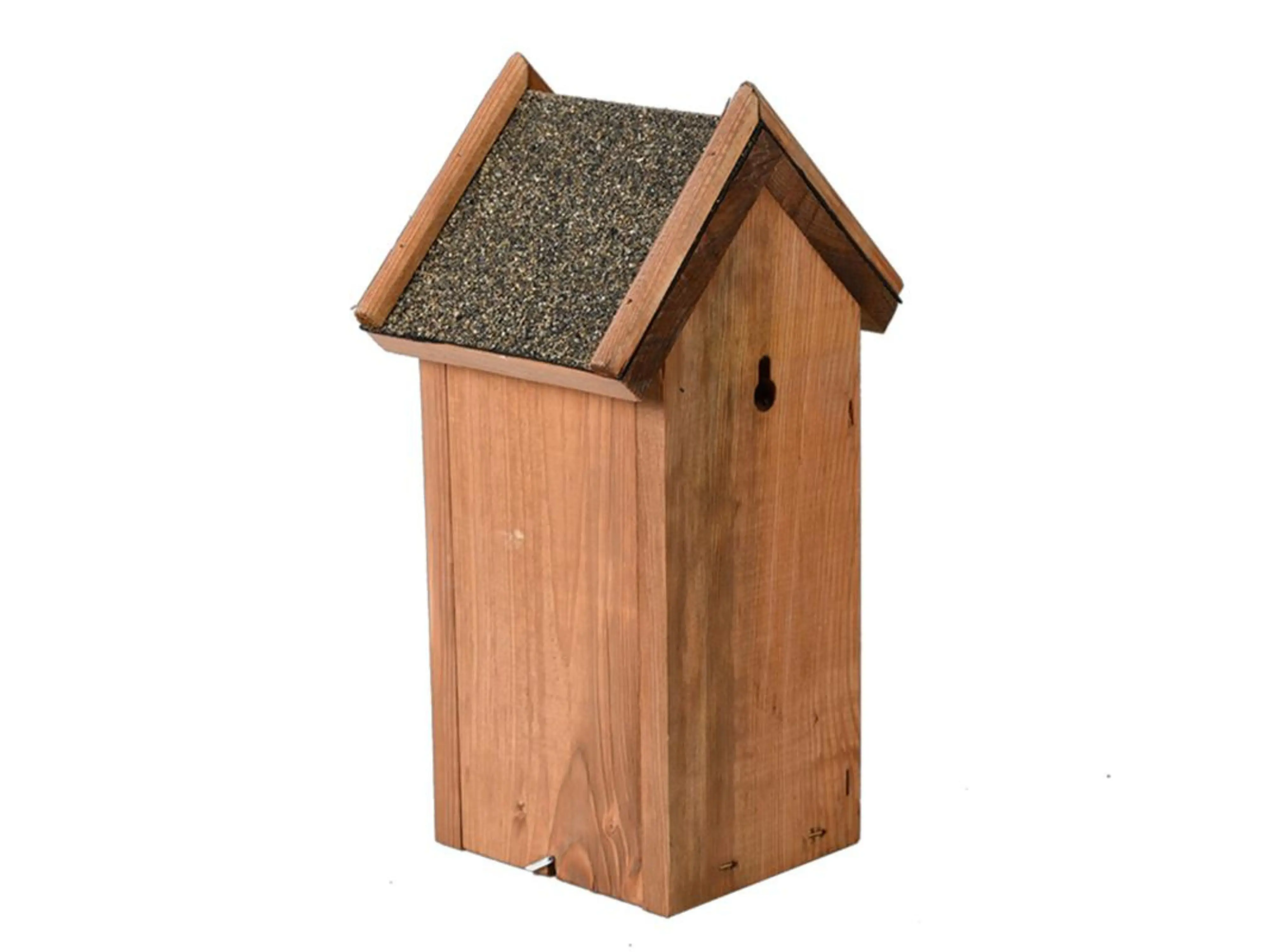 Het stevige bitumen dak beschermt het nest tegen regen, terwijl de zijkant met deurtje het makkelijk maakt om de kast in het najaar schoon te maken. Zo blijft de nestkast in topconditie en kunnen vogels er ook in de winter in schuilen tegen kou en slecht weer.