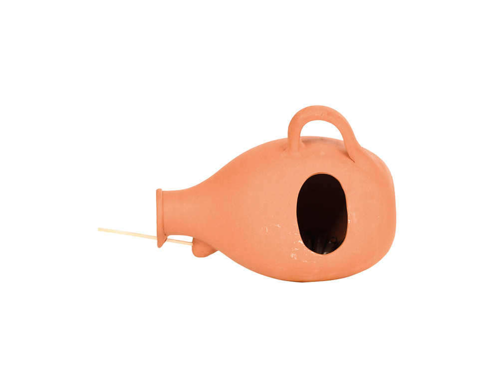 Deze unieke vogelpot is gebaseerd op een model uit de 17de eeuw. Deze handvervaardigde nestpot heeft een authentieke uitstraling en werd op ambachtelijke wijze gemaakt. De terracotta kruik kan dankzij de platte en open achterkant aan de muur worden opgehangen.