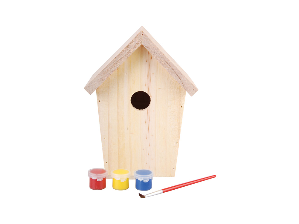 Laat je kinderen creatief zijn met dit vogelhuisje om te schilderen. Met de bijgeleverde verf en kwast kunnen ze het naar eigen verbeelding personaliseren. Met de kleuren geel, blauw en rood kom je al een heel eind en bovendien kan je geel en blauw gaan mengen om een groene kleur te krijgen of meng je rood met geel om een oranje kleur te krijgen.