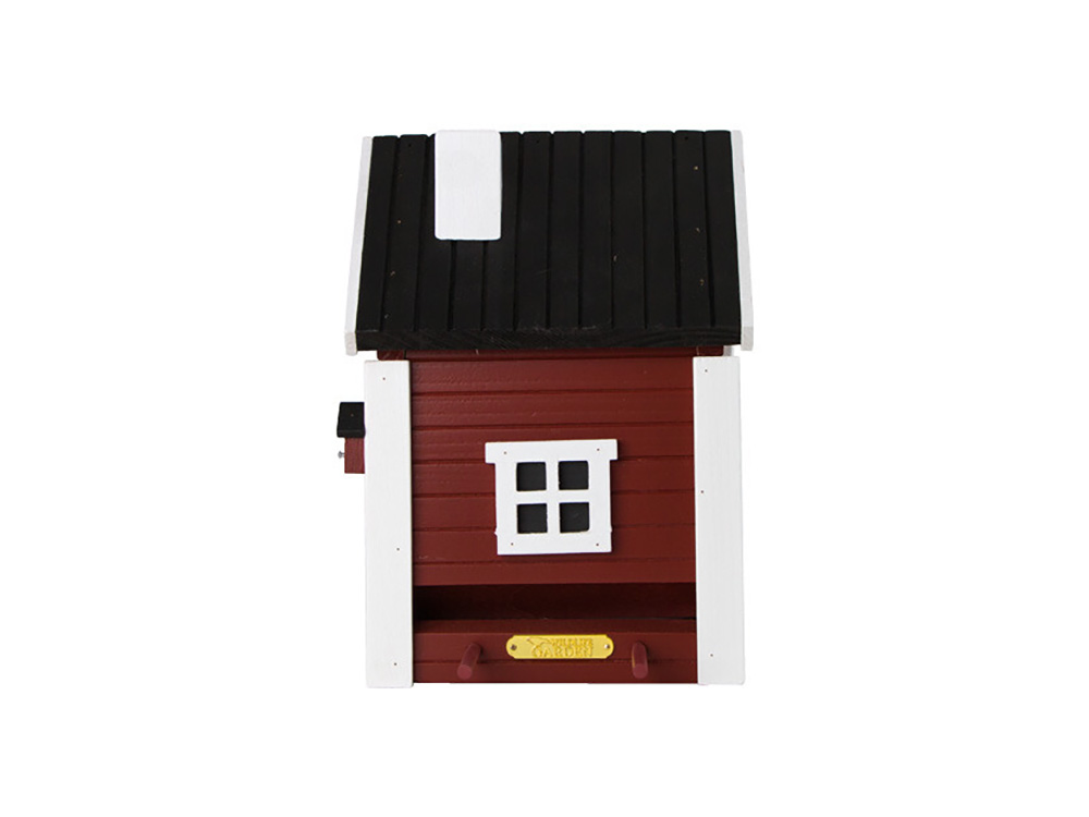 Het huisje bevat een 2- liter reservoir voor vogelzaad. De ronde invliegopening kan afgesloten worden op het moment dat het als voederhuisje dienst doet. Het is geschikt voor kleine vogels omdat de afmetingen dusdanig zijn dat grotere vogels er niet op kunnen landen. Het voeder ligt bovendien goed beschermd tegen wind, regen en de uitwerpselen van vogels. Het bevestigingssysteem maakt het schoonmaken en bijvullen van de huisjes nu nog gemakkelijker.