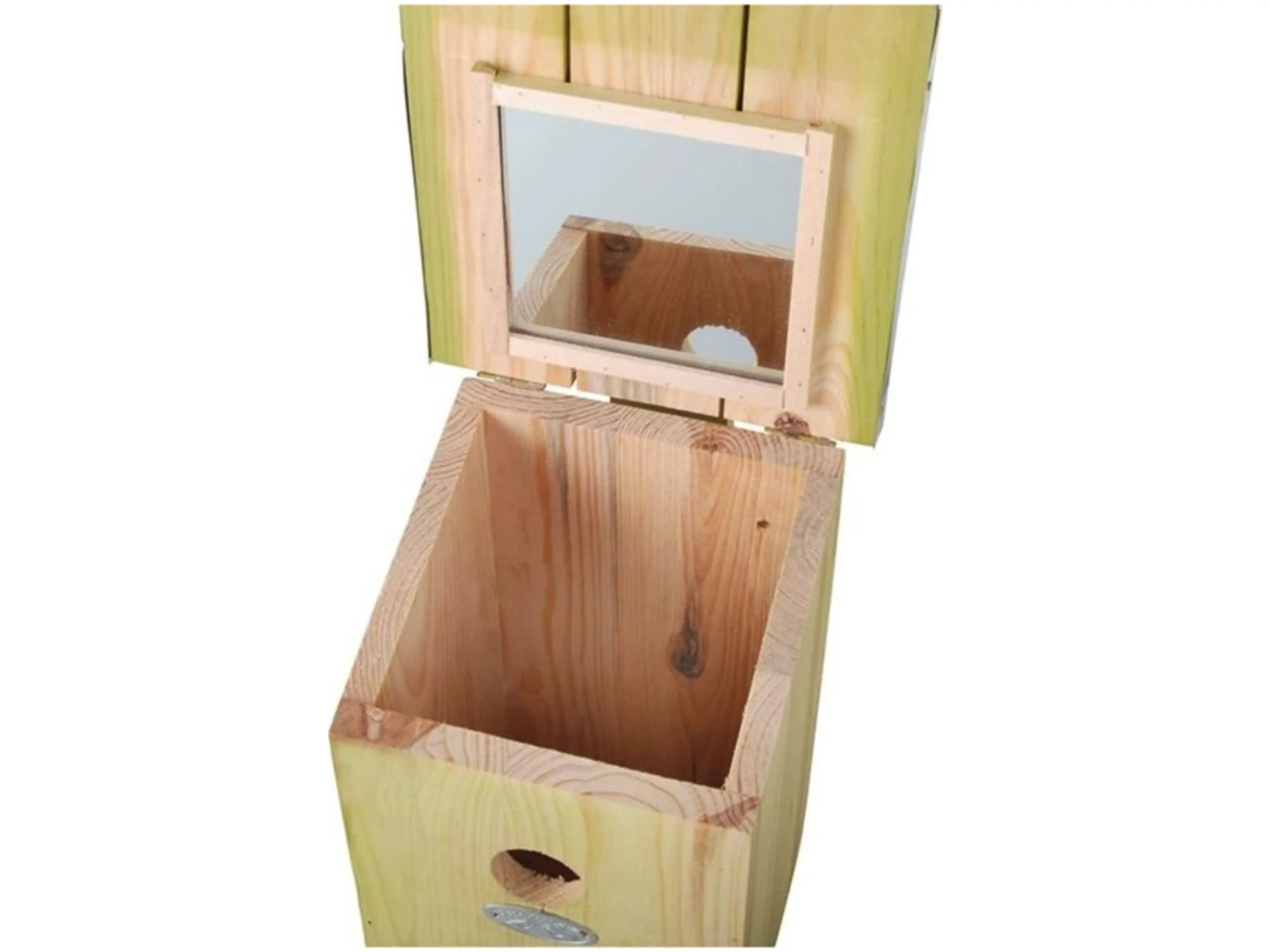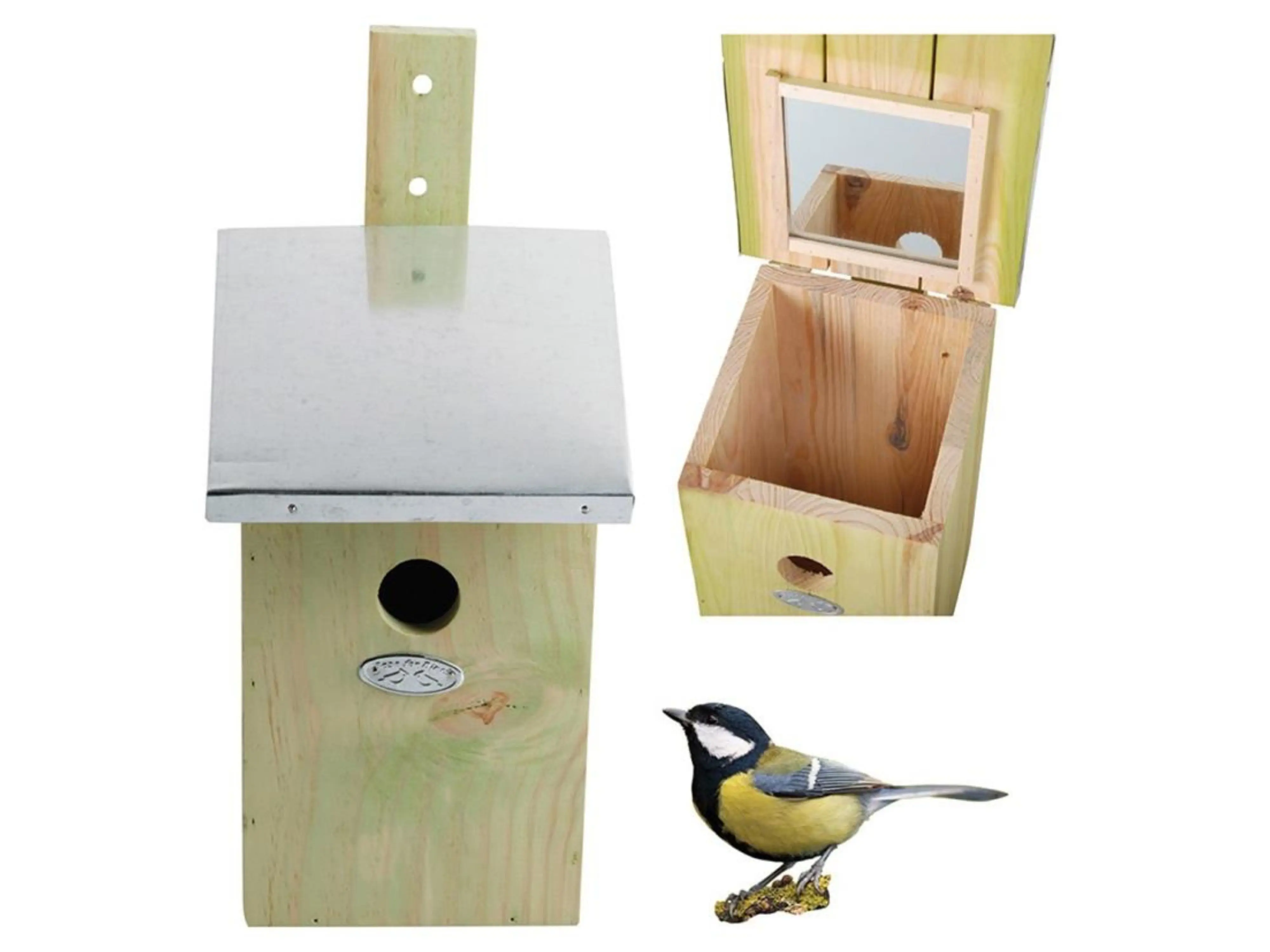 Met deze fraaie nestkast voor mezen kan je, dankzij de ingebouwde spiegel in het dak, de bewoners makkelijk observeren. Het dak kan vlot worden opgetild en dan kan men via de spiegel aan de binnenzijde in de nestkast kijken. Inspectie van de nestkast wordt aangeraden in het najaar in verband met de jaarlijkse schoonmaakbeurt. Inspecteren tijdens het broedseizoen moet uiterst voorzichtig gebeuren en niet te vaak om vervroegd uitvliegen te voorkomen.