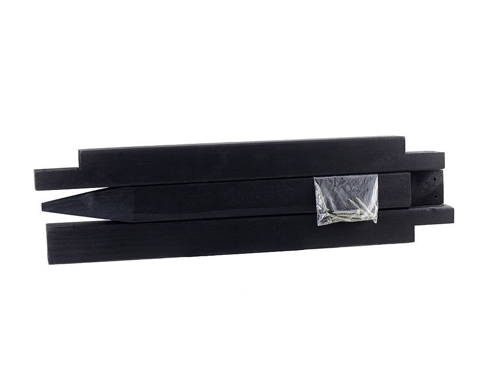 Dankzij het spitse uiteinde kan de paal gemakkelijk in de grond gestoken worden. Met de bijgeleverde schroeven zet je de paal vlotjes in elkaar. Hij is zwart geïmpregneerd en past zowel in een moderne tuin als in een landelijke omgeving.