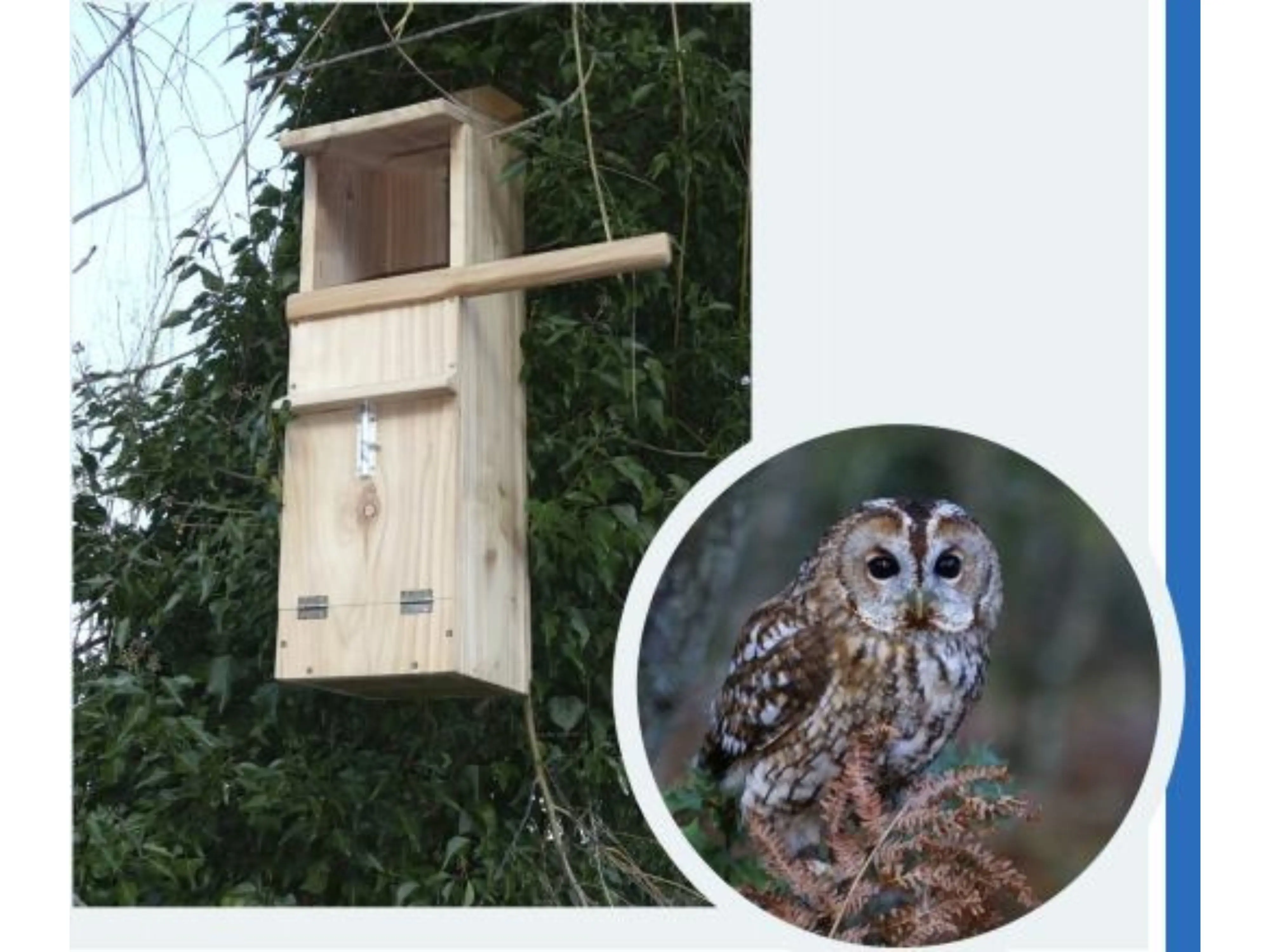 Deze kwalitatieve nestkast is speciaal ontworpen voor de bosuil. De uilenkast is handgemaakt van massief, FSC-gecertificeerd hout afkomstig uit duurzaam beheerde bossen. Vooral op plaatsen waar natuurlijke holtes ontbreken, zoals in grote tuinen met gezonde bomen, dichtbij secundaire bossen en naaldbossen, zullen deze nestkasten gegeerd zijn.