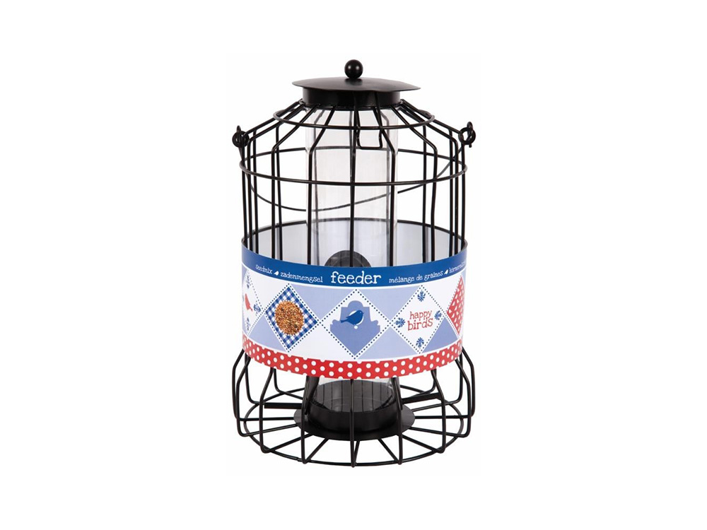 Deze innovatieve zadenvoedersilo laat toe dat enkel kleine vogels van het voer eten. De beschermkooi rond de silo houdt kraaien, eksters, kauwen en andere grote vogels op afstand. Met vier openingen kunnen de kleine vogels gemakkelijk bij het zaad.