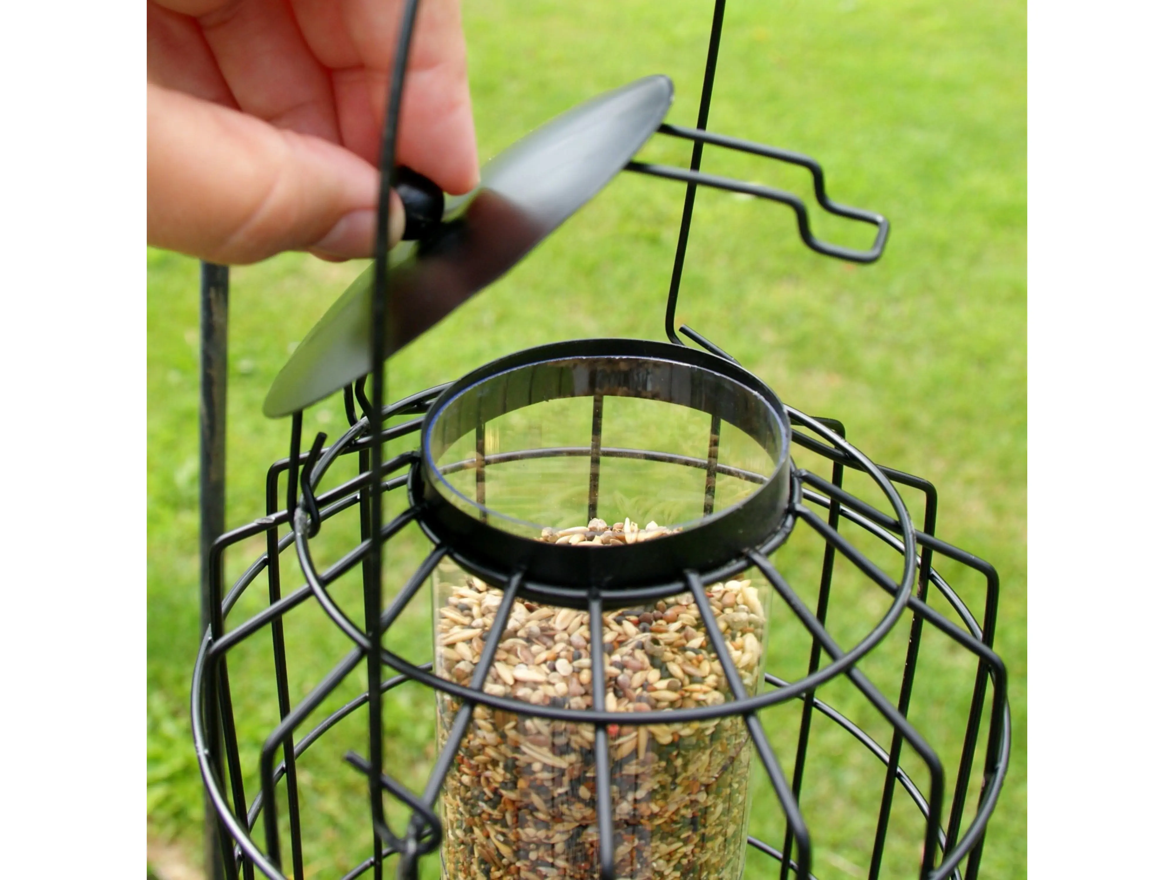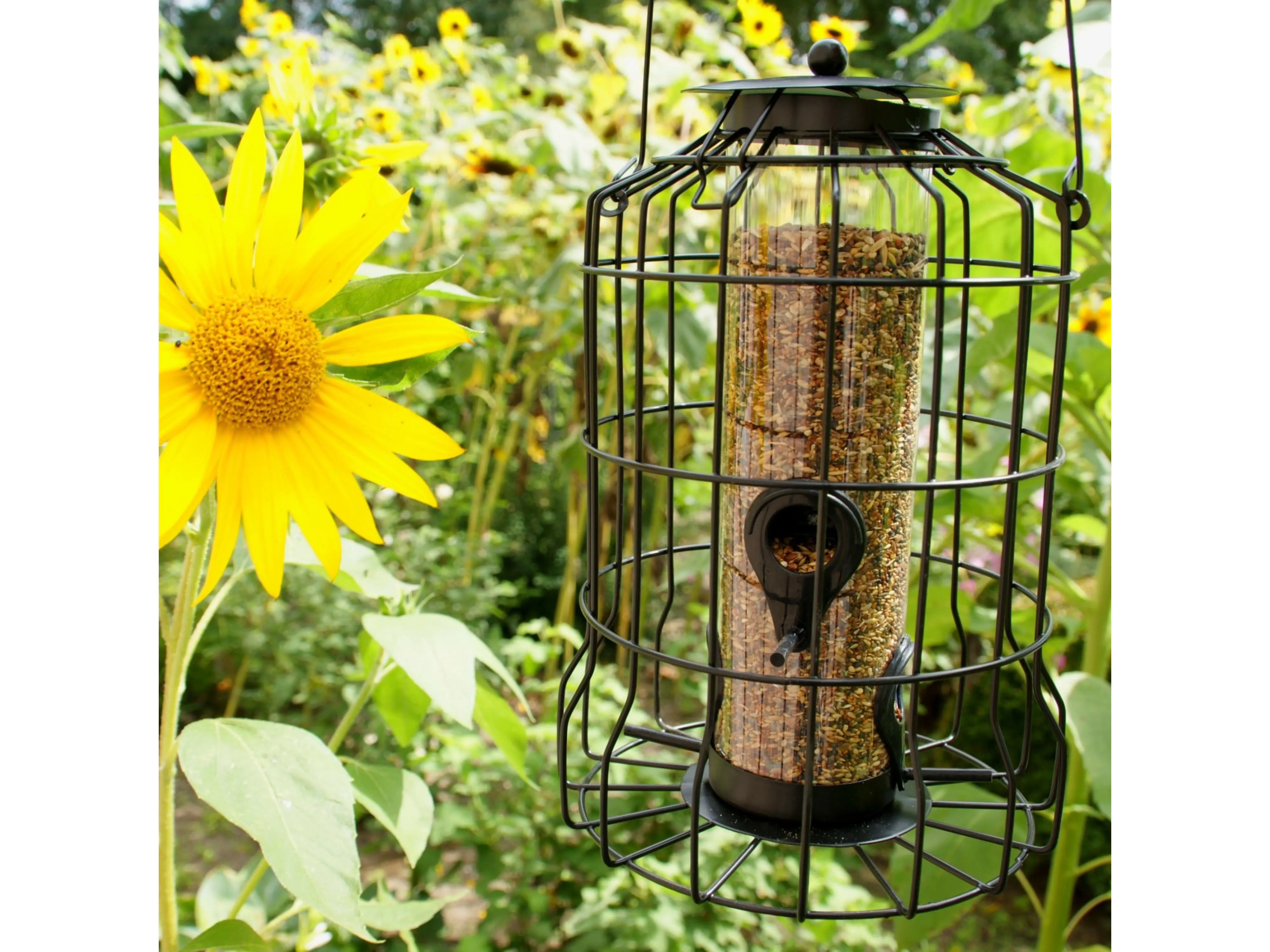 Dankzij de beschermkooi kunnen alleen kleine tuinvogeltjes bij het voer. Zo geniet je langer van de vele kleine vogels die rustig eten zonder zich zorgen te maken over roofvogels of katten.
