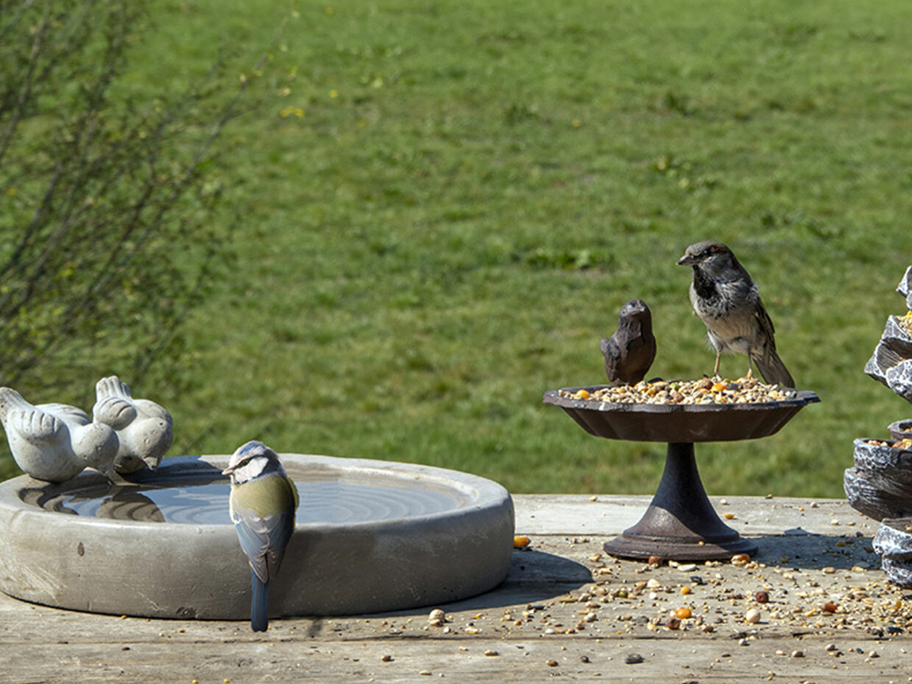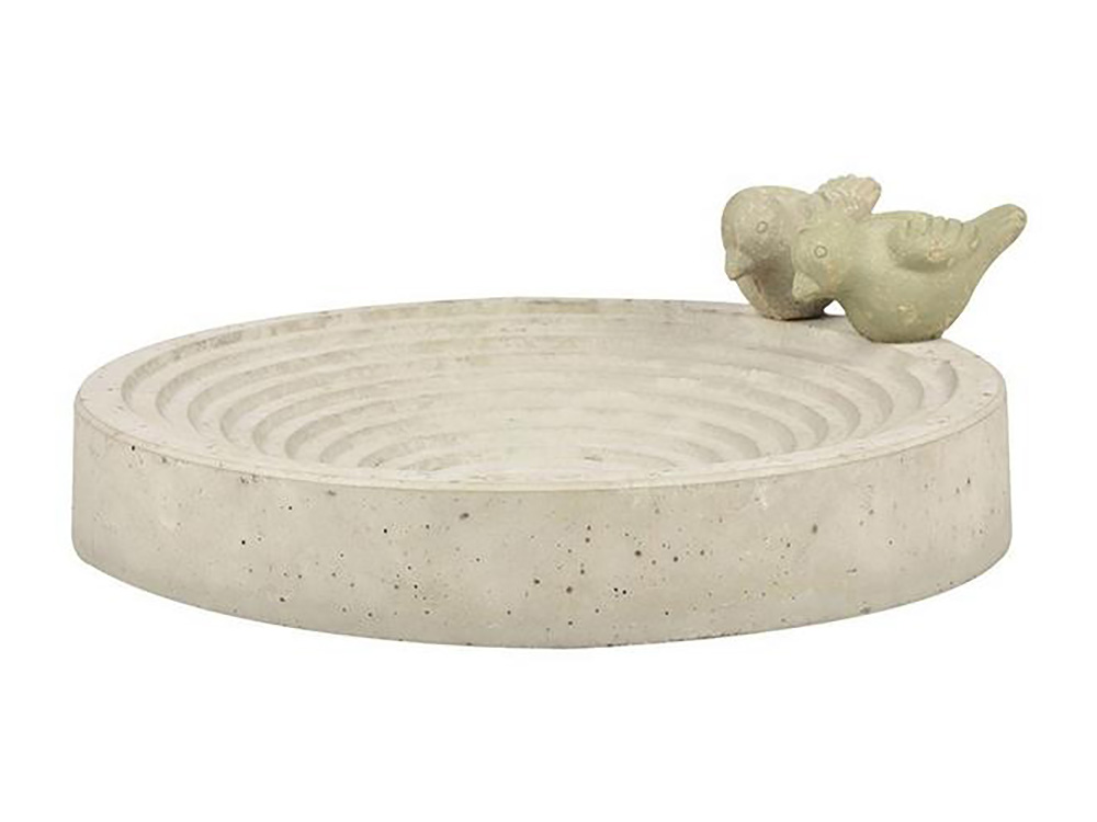 Plaats het vogelbad in de buurt van je terras of raam zodat je eenvoudig van de badende vogels kunt genieten. De schaal is gemaakt uit beton en heeft een grijze kleur. Door de twee vogeltjes op de rand van de schaal is het tevens een heel decoratief element in de tuin.