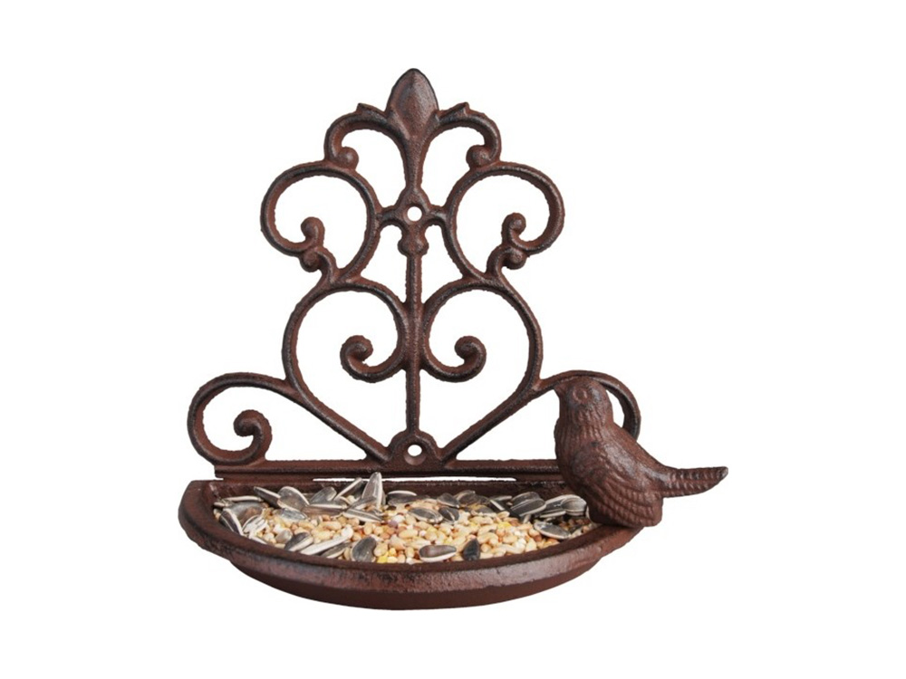 Esschert Design wandvoederschaal gietijzer met vogel
