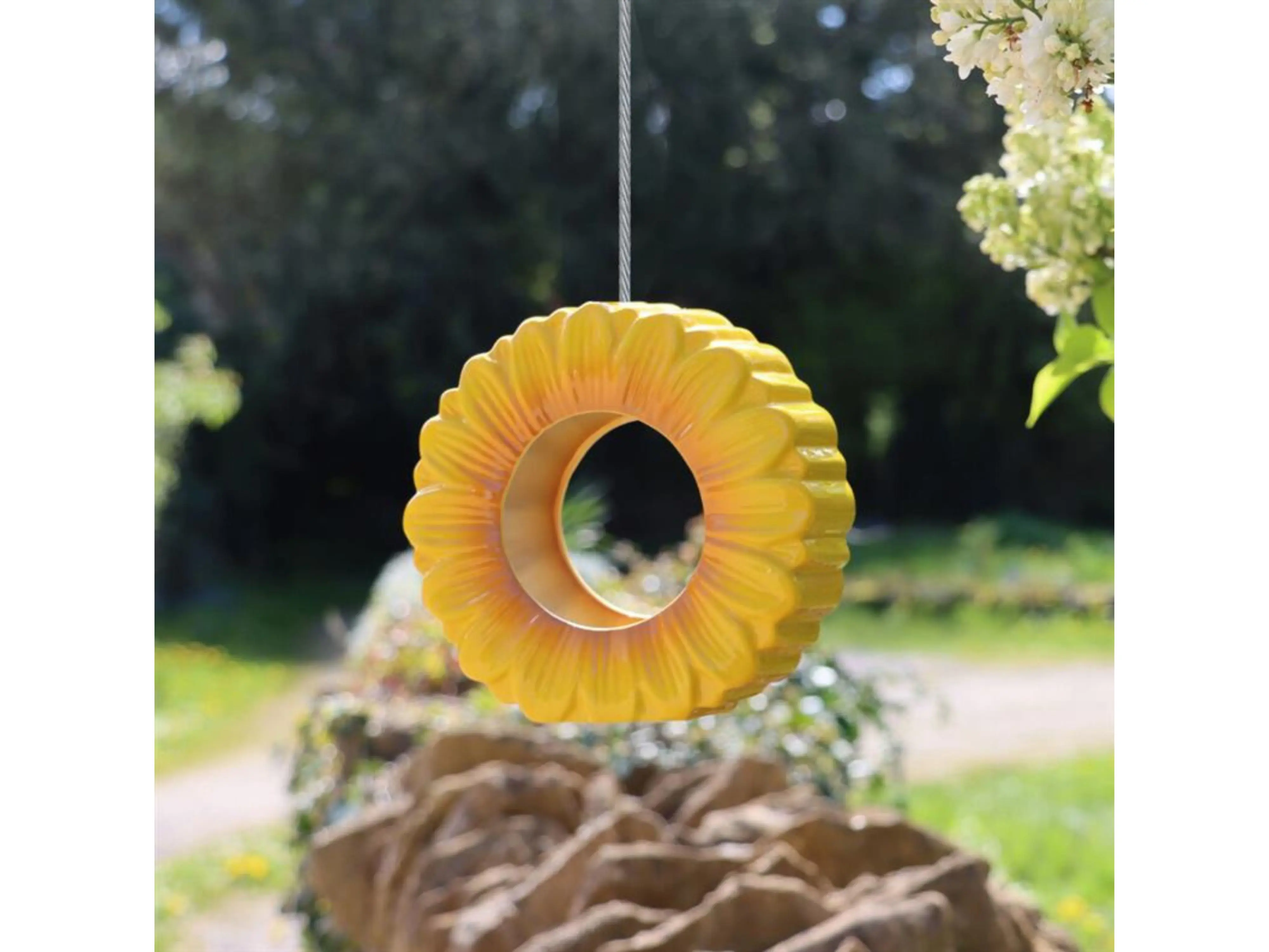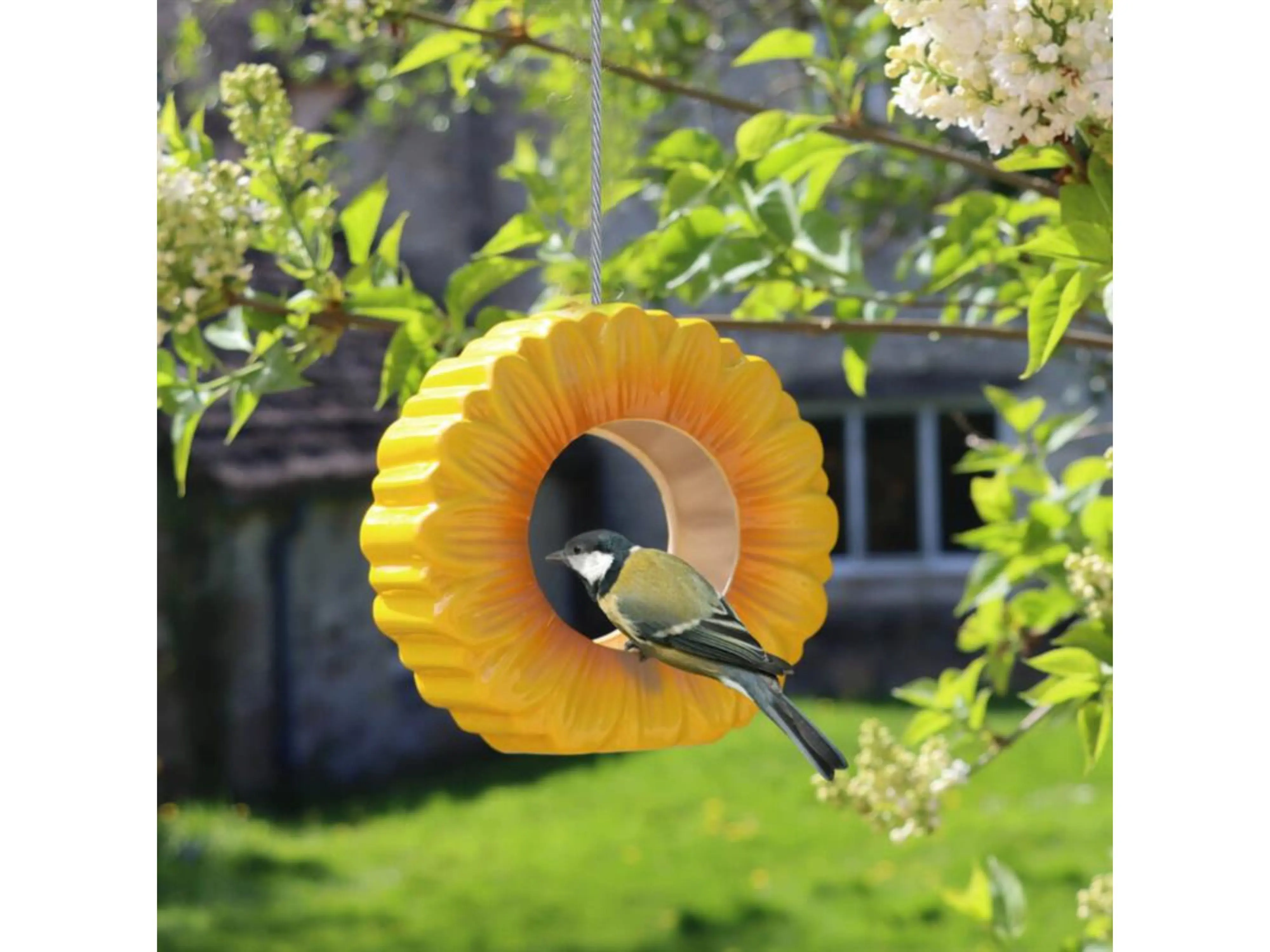 In de vorm van een fleurige bloem voegt dit voederhuisje met zijn geglazuurde keramiek een vleugje warmte en vrolijkheid toe aan elke buitenruimte. Perfect voor natuurliefhebbers en tuiniers, het is een praktische maar mooie toevoeging die vogels uitnodigt om te genieten van een maaltijd in je tuin.