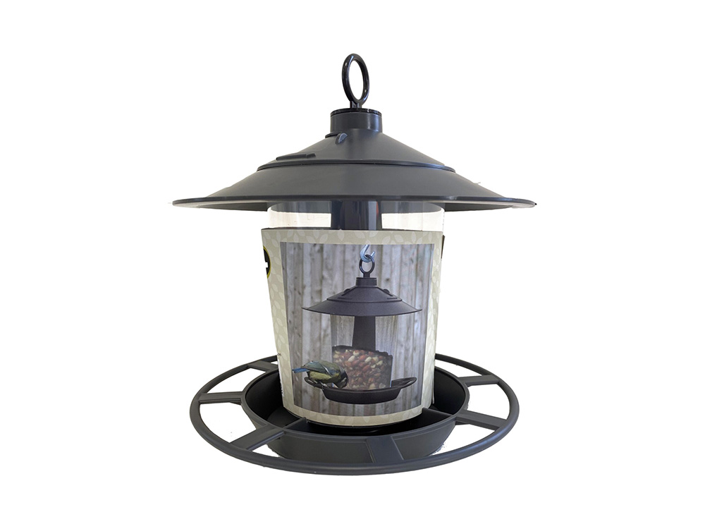 De vogels kunnen vanaf de voorziene zitrand de zaden uit het opvangbakje oppikken. De voedersilo is makkelijk aan te vullen door de opening van het dak. Draai hiervoor het dak naar links of naar rechts.