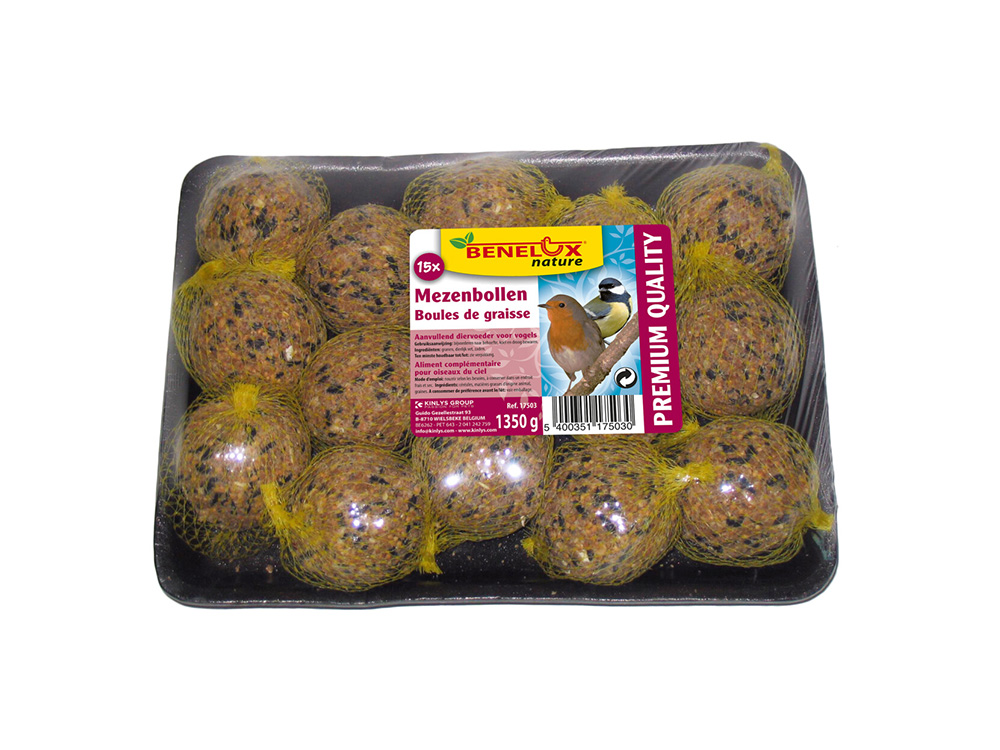 Mezenbollen zijn het ideale aanvullende wintervoer om de vogels in de tuin de koudste maanden door te helpen. Ze zijn samengesteld uit granen, dierlijk vet en zaden.