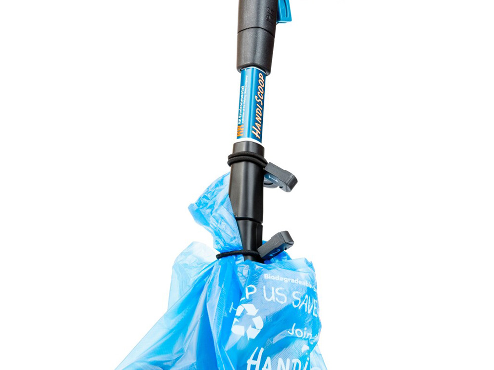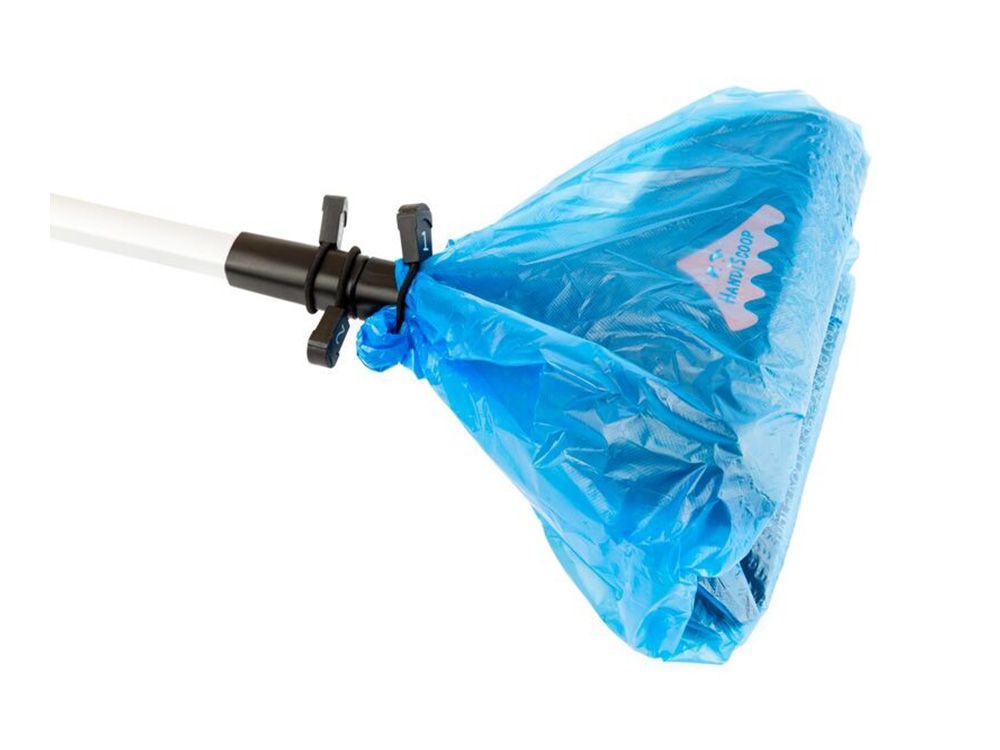 Over het schepje kan je drie zakjes over elkaar aanbrengen. Je vouwt ze over de grijper heen en maakt ze boven de grijper vast met de voorziene rekkertjes. Wanneer je de hondenpoep verwijdert, kan je dankzij het doordachte design, meerdere hoopjes opnemen. Eenmaal het schepje vol is, kan je door de trigger aan het handvat te blokkeren de grijper gesloten houden terwijl je het eerste zakje losmaakt en dichtknoopt. Nadien deblokkeer je de trigger en het zakje kan zonder dat je het ooit hebt aangeraakt de vuilnisbak in. Er zijn nu nog steeds twee zakjes op de grijper aanwezig voor later gebruik.