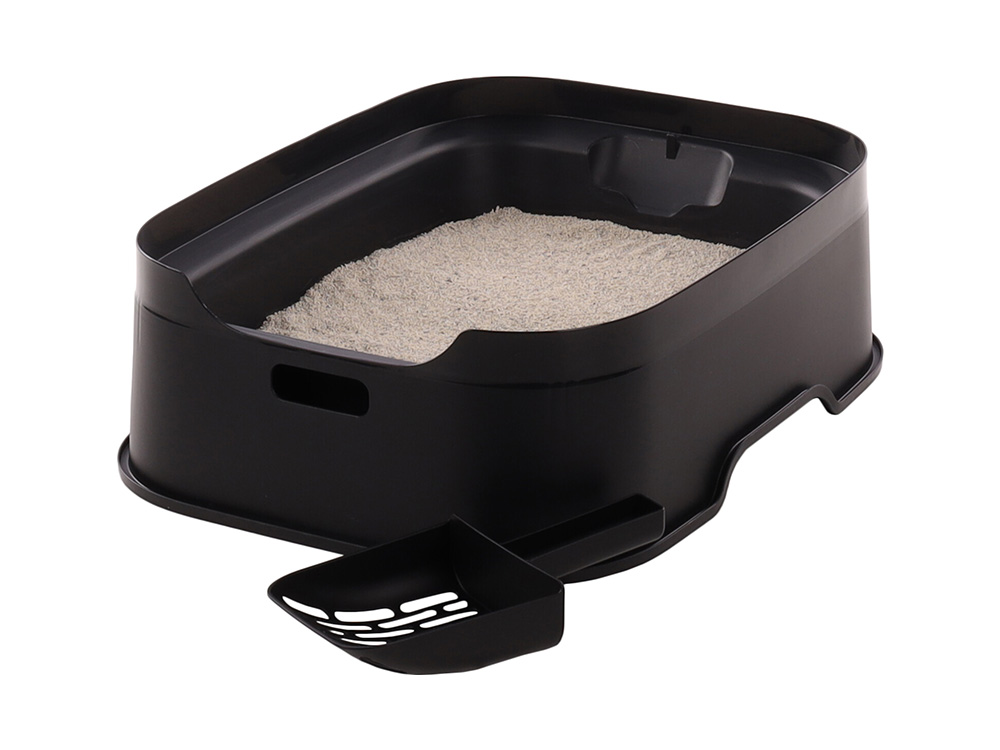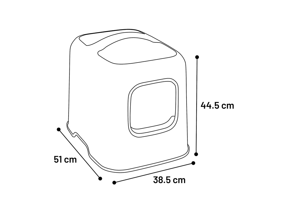 Het kattentoilet is gemaakt van 98% gerecycleerde kunststof en is makkelijk schoon te maken. Het deskel is afneembaar en voorzien van een handvat zodat je de kattenbak makkelijk kunt verplaatsen. Onderaan zijn er ook inkepingen voorzien. Een kattenbakschep wordt meegeleverd.