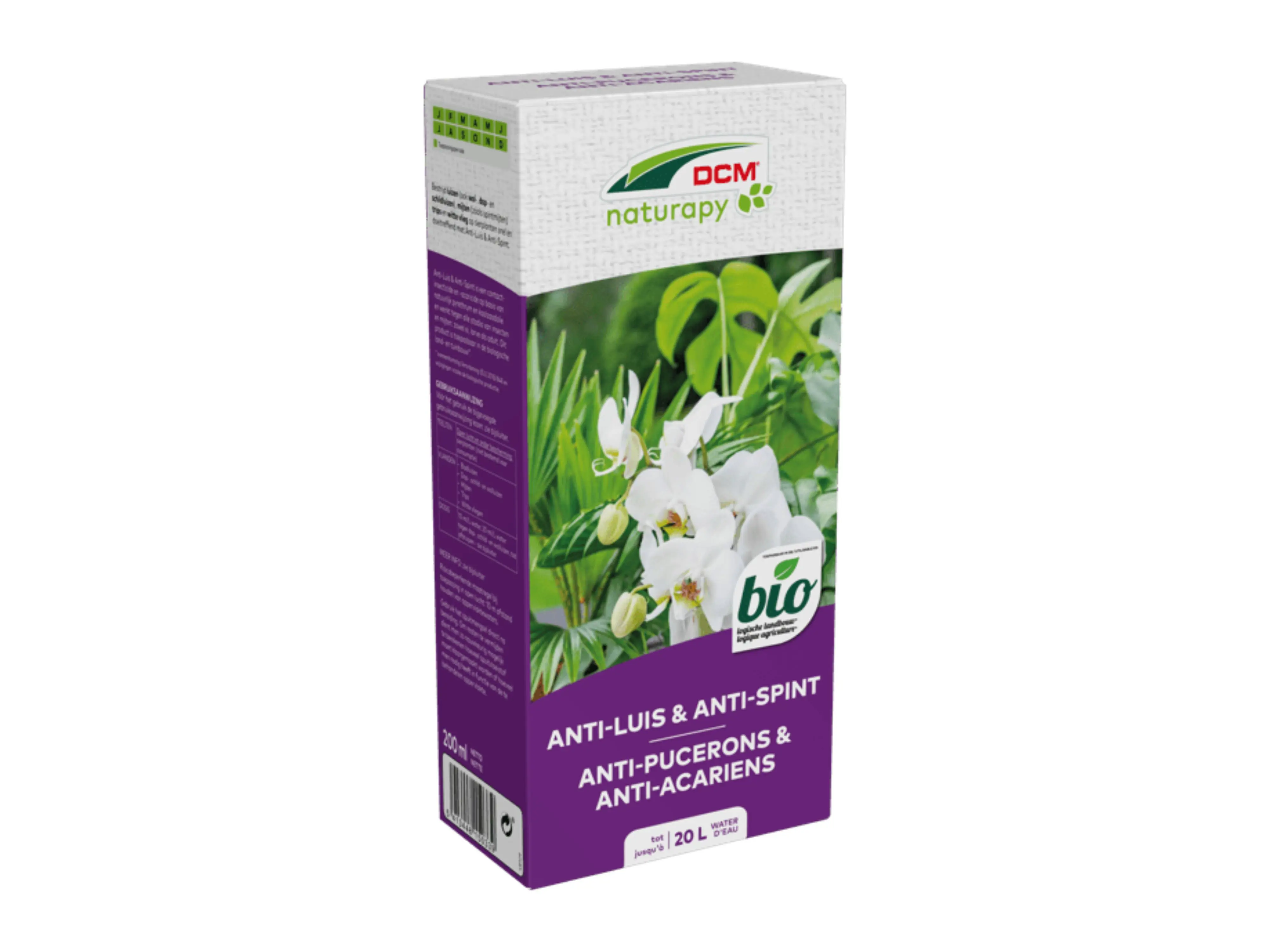 Snelwerkend en doeltreffend contactinsecticide en -acaricide ter bestrijding van luizen (ook wol-, dop- en schildluizen) en mijten (zoals spintmijten). Anti-Luis & Anti-Spint is een middel op basis van natuurlijk pyrethrum en koolzaadolie en werkt tegen alle stadia van insecten en mijten: zowel ei, larve als adult. Toepasbaar in de biotuin