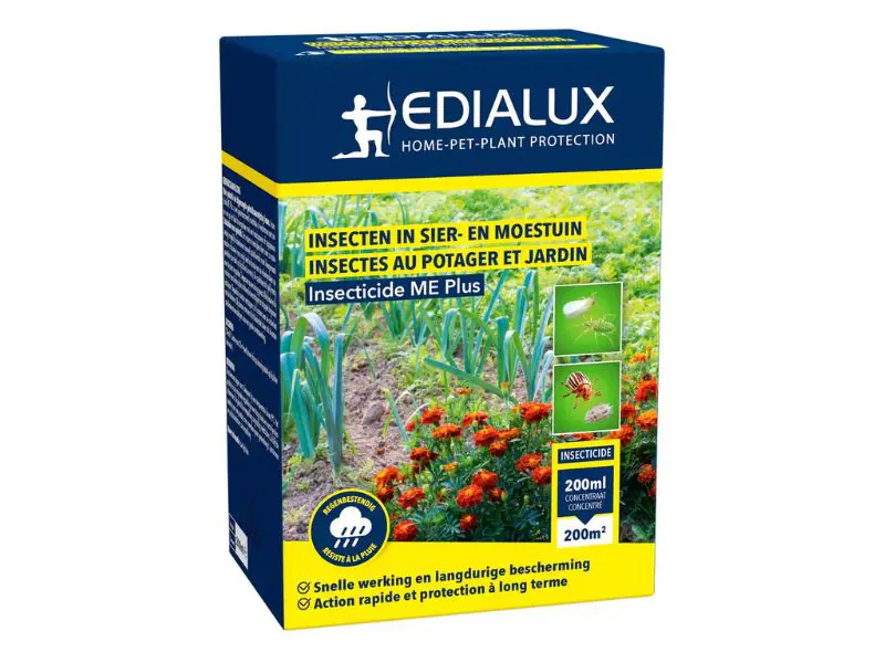 Me Plus van Edialux is een insecticide met een een zeer breed werkingsspectrum en beschermt sierplanten en potplanten, zowel in de volle grond als onder bescherming, evenals groenten en fruit tegen een groot aantal bijtende en zuigende insecten.