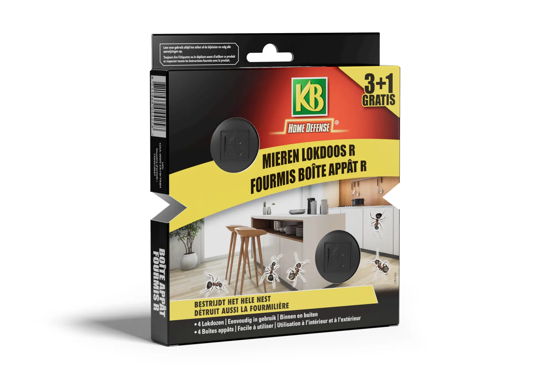 De Home Defense mierenlokdozen van KB zijn gebruiksklaar en bestrijden zwarte wegmieren en hun nesten in en rond de woning.