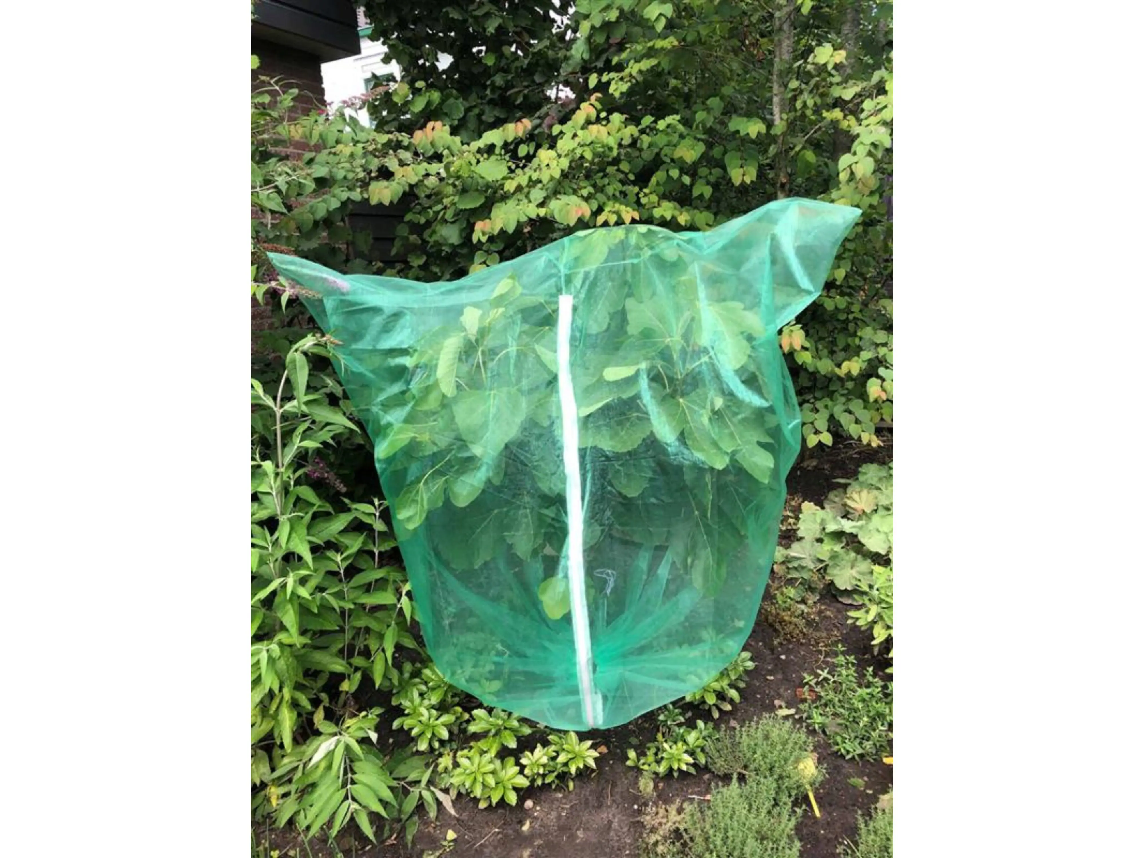 De hoes is bovendien licht- en luchtdoorlatend en doordat de temperatuur in de zak iets hoger ligt, zullen de bessen ook beter rijpen. Hierdoor ligt het suikergehalte in het fruit hoger en smaken ze nog beter. De hoes is zeer eenvoudig rondom de boom of struik aan te brengen en kan met de rits gesloten worden. Aan de onderzijde is bovendien een trekkoord voorzien om de jurk mooi te laten aansluiten.
