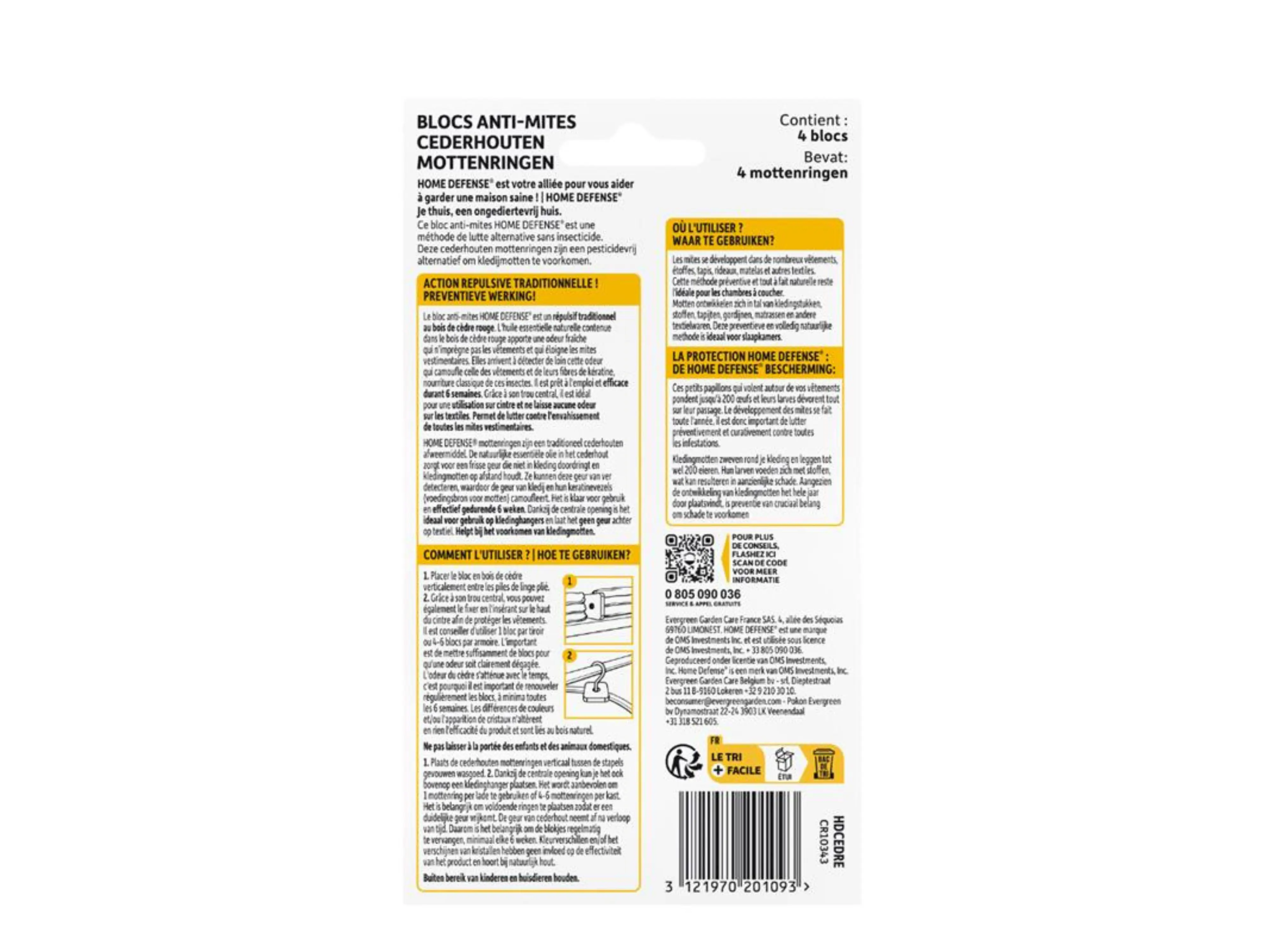 Voorkom schade aan je kleding door mottenlarven met de Home Defense kledingmotten ringen. Deze ringen, gemaakt van natuurlijk cederhout, verspreiden een geur die kledingmotten afschrikt en zo je textiel beschermt. Dankzij de essentiële olie in het cederhout worden motten op afstand gehouden, zonder dat de geur in je kleding trekt. Dit product is eenvoudig in gebruik en effectief voor kledingkasten en slaapkamers.