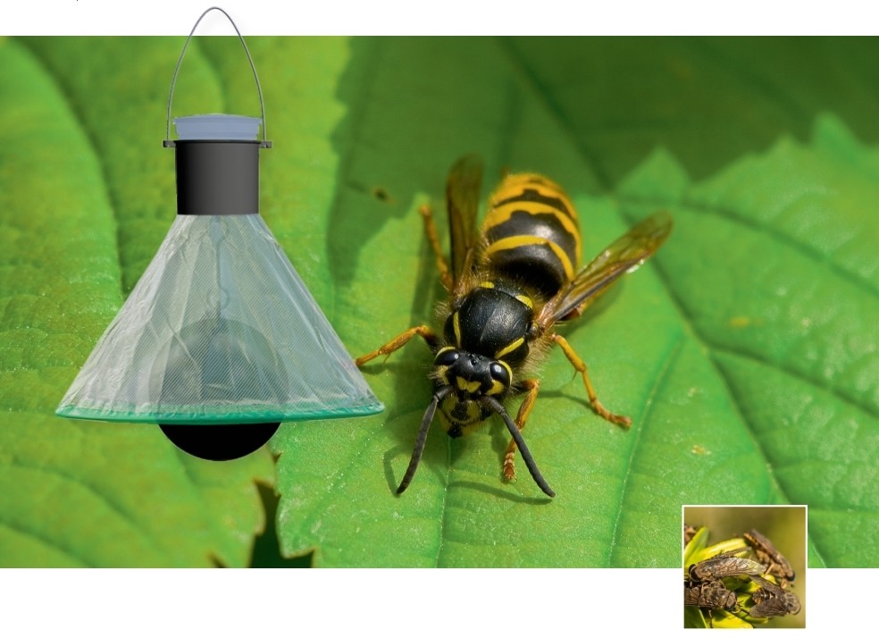 Gemakkelijke en effectieve insectenval voor vervelende insecten zoals dazen, vliegen en wespen. Het principe van deze val is een reeds lang bewezen en algemeen aanvaarde methode: met behulp van de zon, wordt de lucht onder de trechterkap opgewarmd, de warmte wordt geabsorbeerd door de zwarte bal. De opgewarmde bal straalt infrarood licht uit en heeft op die manier een enorme aantrekkingskracht op dazen. Zij zien de opgewarmde en bewegende bal als een potentiële voedingsbron.