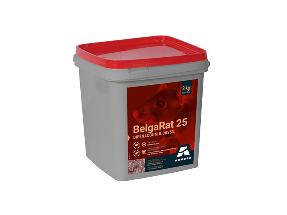Belgarat 25 is een lokaas op basis van volle tarwe en difenacoum. De oplossing tegen ratten en muizen want tarwekorrels zijn het favoriete en meest geaccepteerde voedsel van bruine ratten in hun omgeving. Hierdoor zullen ze niet aan het lokaas kunnen weerstaan! Het gif heeft een krachtige werking waardoor slechts één inname nodig is.