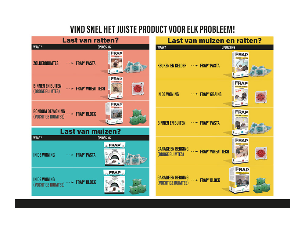 De FRAP-producten zijn op basis van difethialon, een krachtige en snelwerkende actieve stof van de tweede generatie waartegen geen enkele resistentie bij muizen wordt vastgeseld.