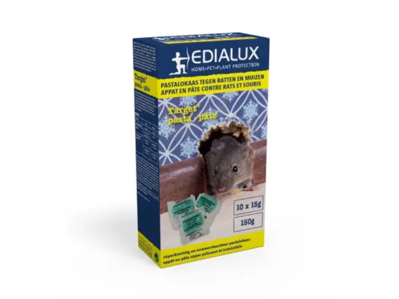 De Edialux ratten- en muizenverjagende pasta 150g is een krachtige oplossing voor Rattenbestrijding in en rond jouw huis of bedrijf. Deze gebruiksklare lokaaspasta is speciaal ontwikkeld om bruine ratten, zwarte ratten en muizen snel en effectief te bestrijden. Dankzij de aantrekkelijke samenstelling nemen knaagdieren het lokaas eenvoudig op, waardoor jouw ongedierteprobleem snel wordt aangepakt.