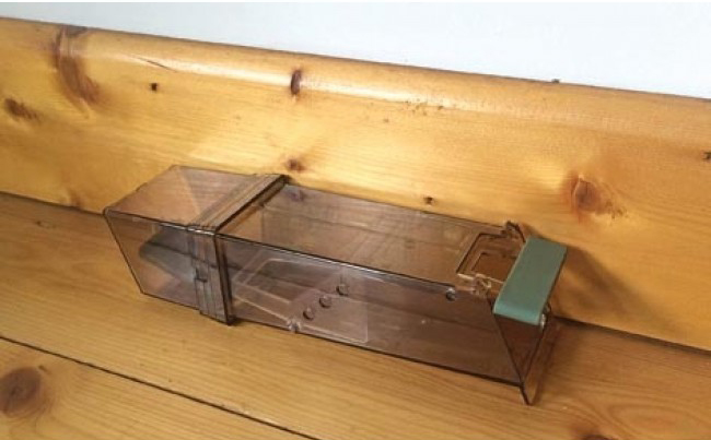 Handige val voor het levend vangen van muizen. Deze transparante inloopval vangt één muis per keer. Lok de muis door het lokaas (chocolade, peperkoek,...) achterin de val te leggen. Zet het valdeurtje in één beweging open en plaats de val langsheen een muur. De muis die de val inloopt doet het deurtje sluiten.