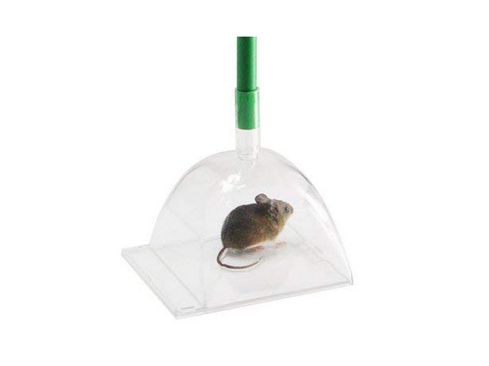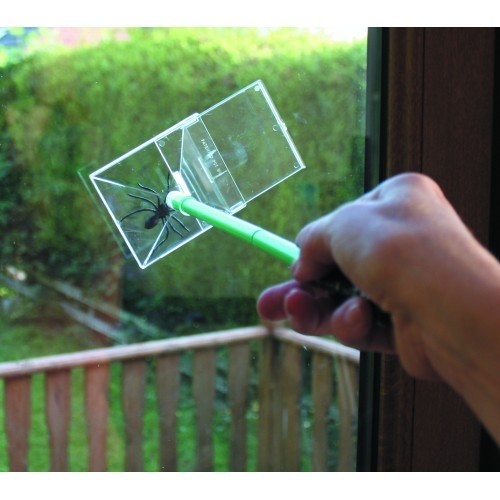 Met dit eenvoudige gadget vang je alle spinnen en ongedierte zoals wantsen, langpootmuggen, wespen en muizen zonder ze aan te raken. Schuif het deurtje open en zet de stolp over het insect, daarna draai je het geheel en valt het deurtje vanzelf dicht onder invloed van de zwaartekracht. Of je schuift het dicht met de voet of met de hand om het diertje te vangen, dit allemaal op armlengte!