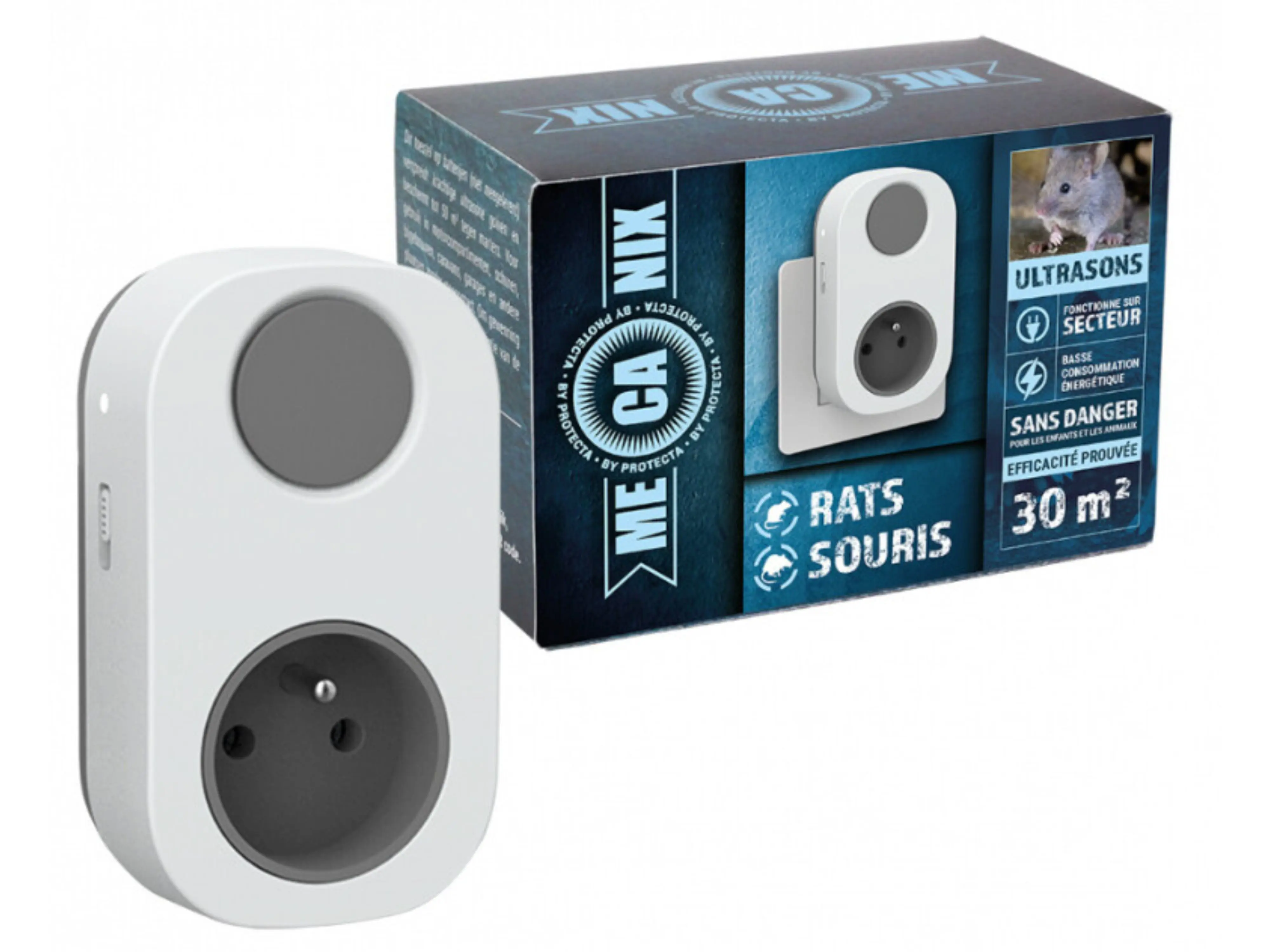 Dit apparaat zendt krachtige ultrasone golven uit en beschermt tot 30 m² tegen ratten en muizen. De frequentie van de golven varieert automatisch om gewenning te voorkomen. Dankzij het ingebouwde stopcontact blijft deze vrij voor andere apparaten.