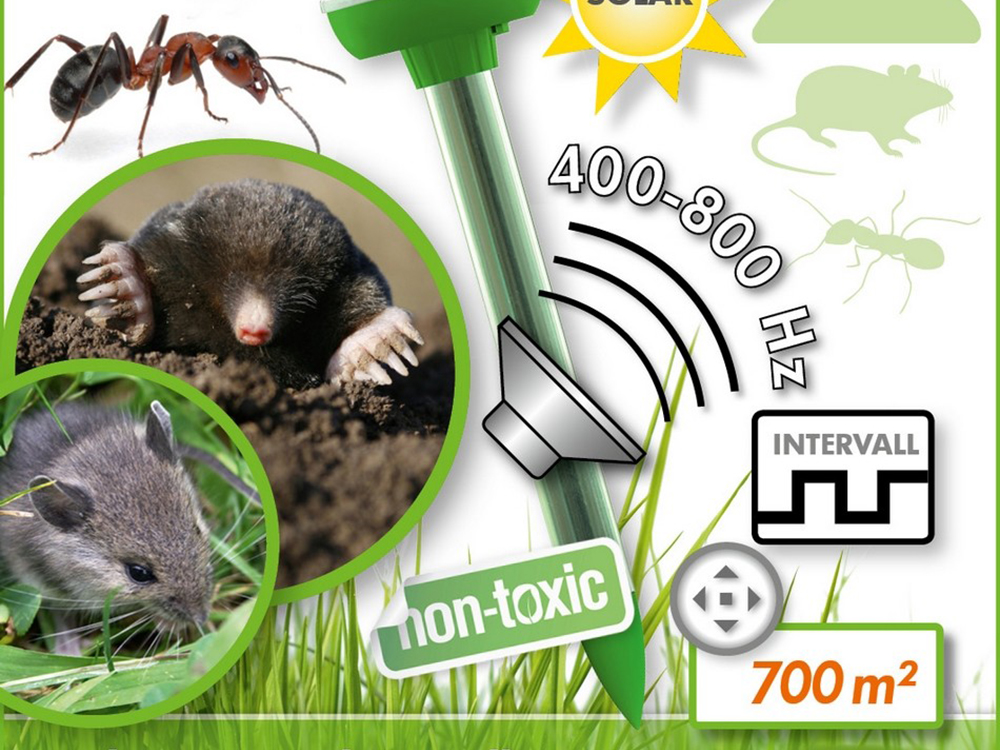 Het toestel is overal inzetbaar en volledig vrij van chemicaliën. Je kan dit toestel gewoon in de grond prikken en inschakelen. De ultrasone tonen die elke 40 seconden worden uitgezonden zijn zeer onaangenaam voor ongewenste tuingasten zoals mollen, woelmuizen, mieren,...