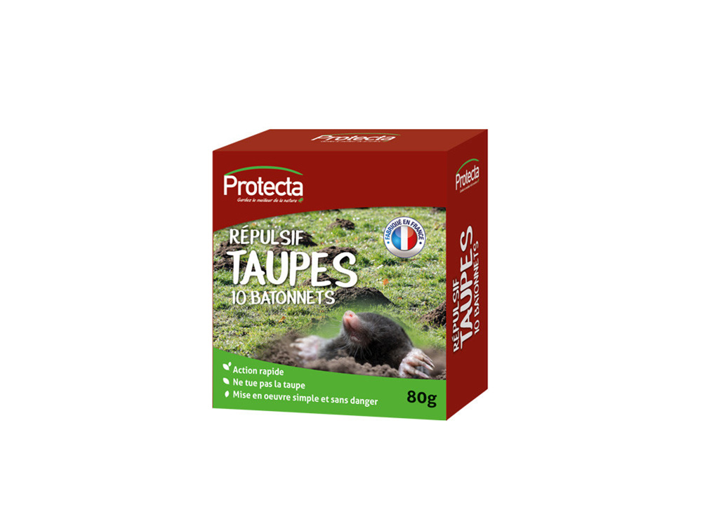 Een set van tien staafjes die zijn samengesteld uit een natuurlijk plantenextract. Deze anti-mollenstokjes zijn een natuurlijke oplossing tegen de activiteit van mollen, woelratten en woelmuizen.