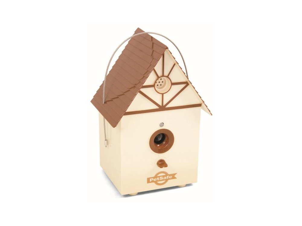 Dit ultrasone anti-blaf toestel dat lijkt op een vogelhuisje, detecteert hondengeblaf en reageert op geblaf door het uitsturen van ultrasoon geluiden. Dat ultrasoon geluid kan niet door mensen worden waargenomen, maar wel door honden. Ze vinden het geluid onaangenaam en al snel hebben ze door dat dit geluid pas te horen is nadat ze zelf blaffen, waardoor ze het blaffen in de buurt van het vogelhuisje afleren.