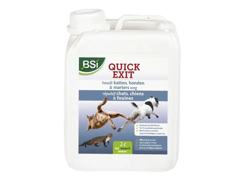 Last van ongewenste dieren in je tuin of rond je woning? Met BSI Quick Exit creëer je eenvoudig een effectieve geurbarrière waar honden, katten en marters instinctief van wegblijven. Geen overlast meer van uitwerpselen, omgewoelde bloemperken of beschadigde autokabels!