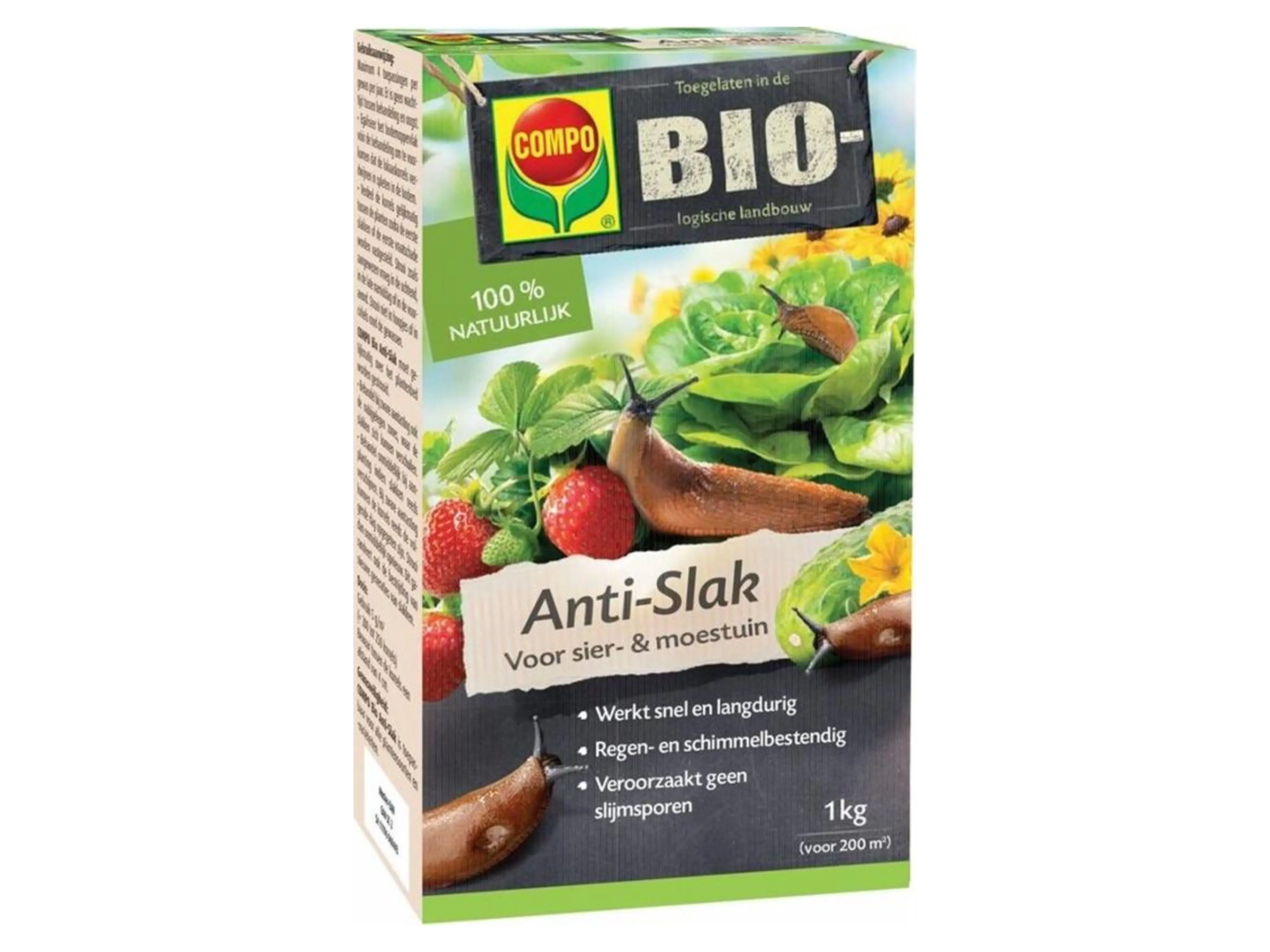 Compo Bio Anti-Slak is een heel aantrekkelijk en doeltreffend lokaas ter bestrijding van alle soorten slakken in de sier- en moestuin. Het is een slakkenbestrijder op basis van ijzerfosfaat, een ijzerhoudende minerale stof van natuurlijke oorsprong. Eenvoudig toe te passen korrels die de slakken uit hun schuilplaats lokken.