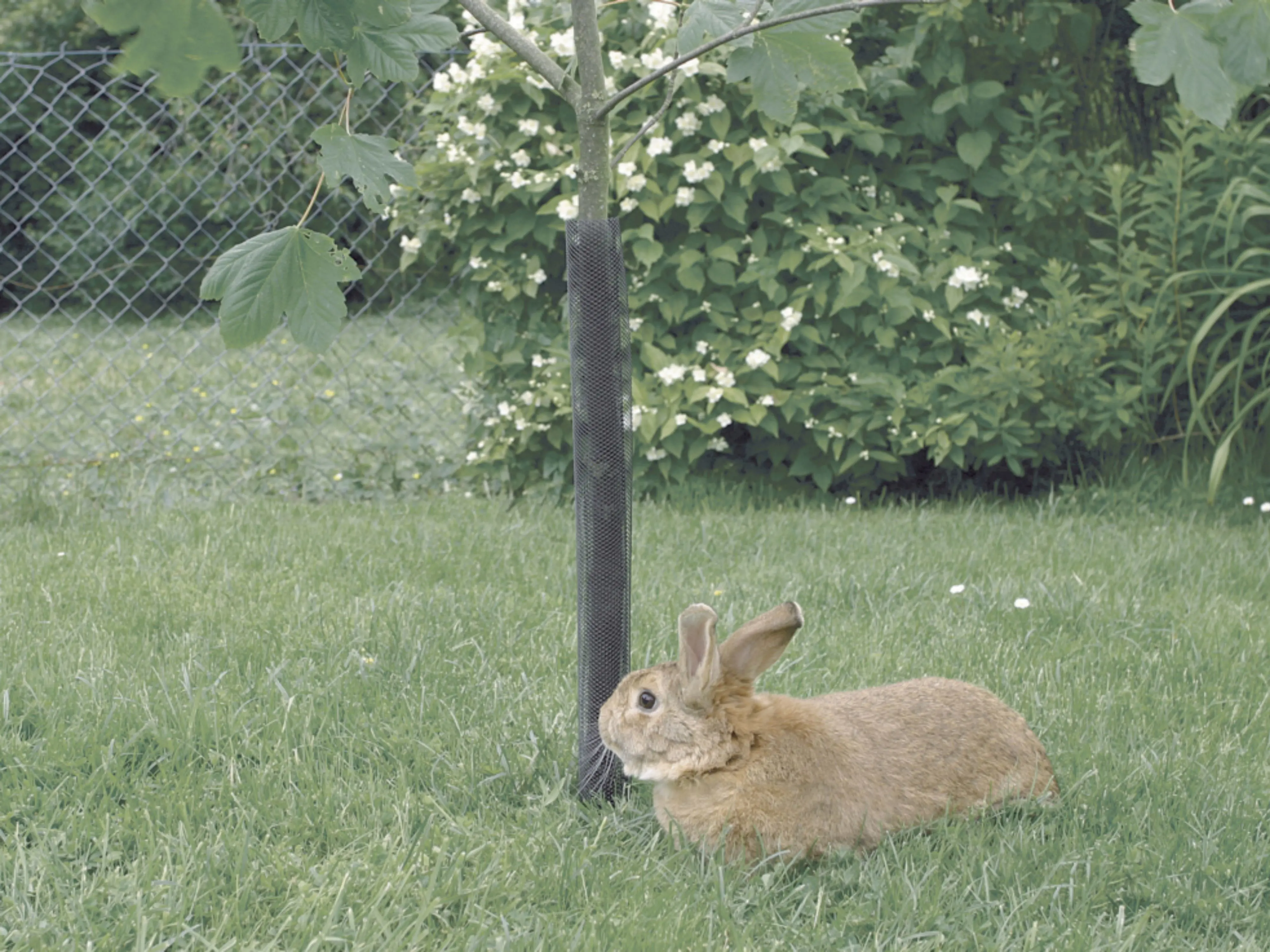 Hebben konijnen, hazen of reeën het gemunt op jouw bomen? Bescherm jonge aanplant eenvoudig en doeltreffend met de Treex boomstambeschermer van Nortene.