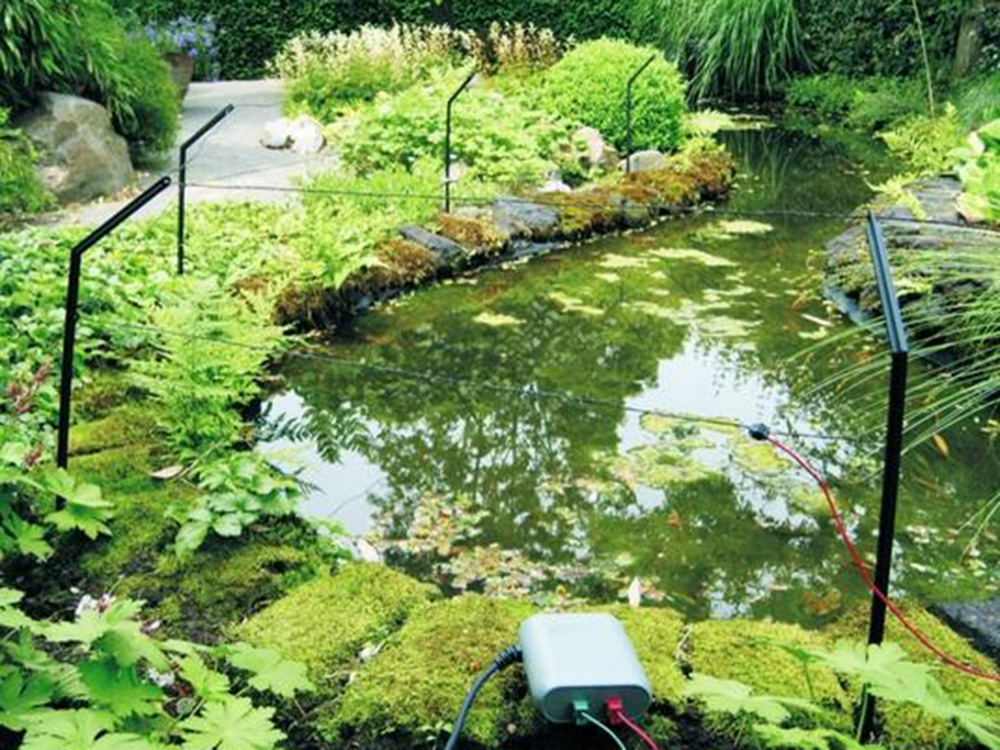 - De 80 meter draad is voldoende om 40 meter vijverrand met twee draden te beschermen.