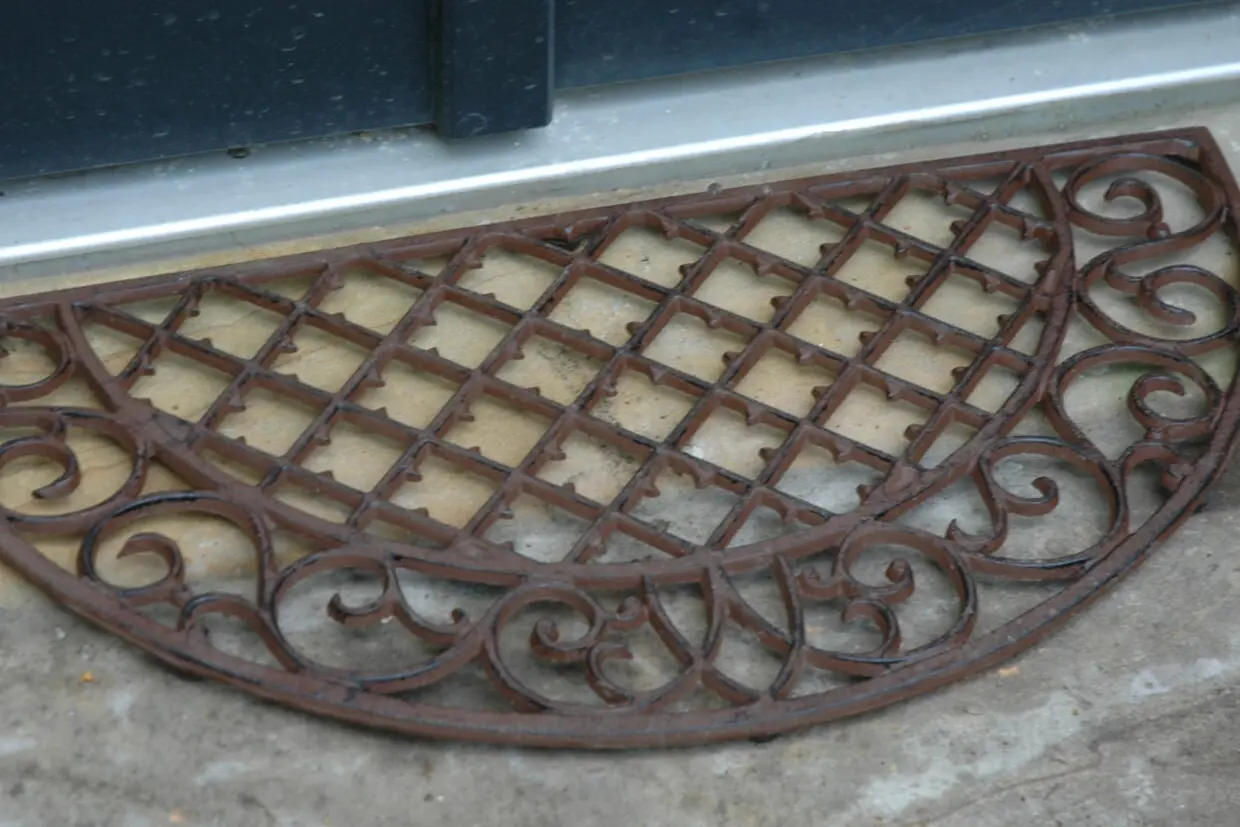 Een klassieke Victoriaanse deurmat van Esschert Design gemaakt uit gietijzer met sierlijke krullen, die een landelijke uitstraling geeft aan elke entree.