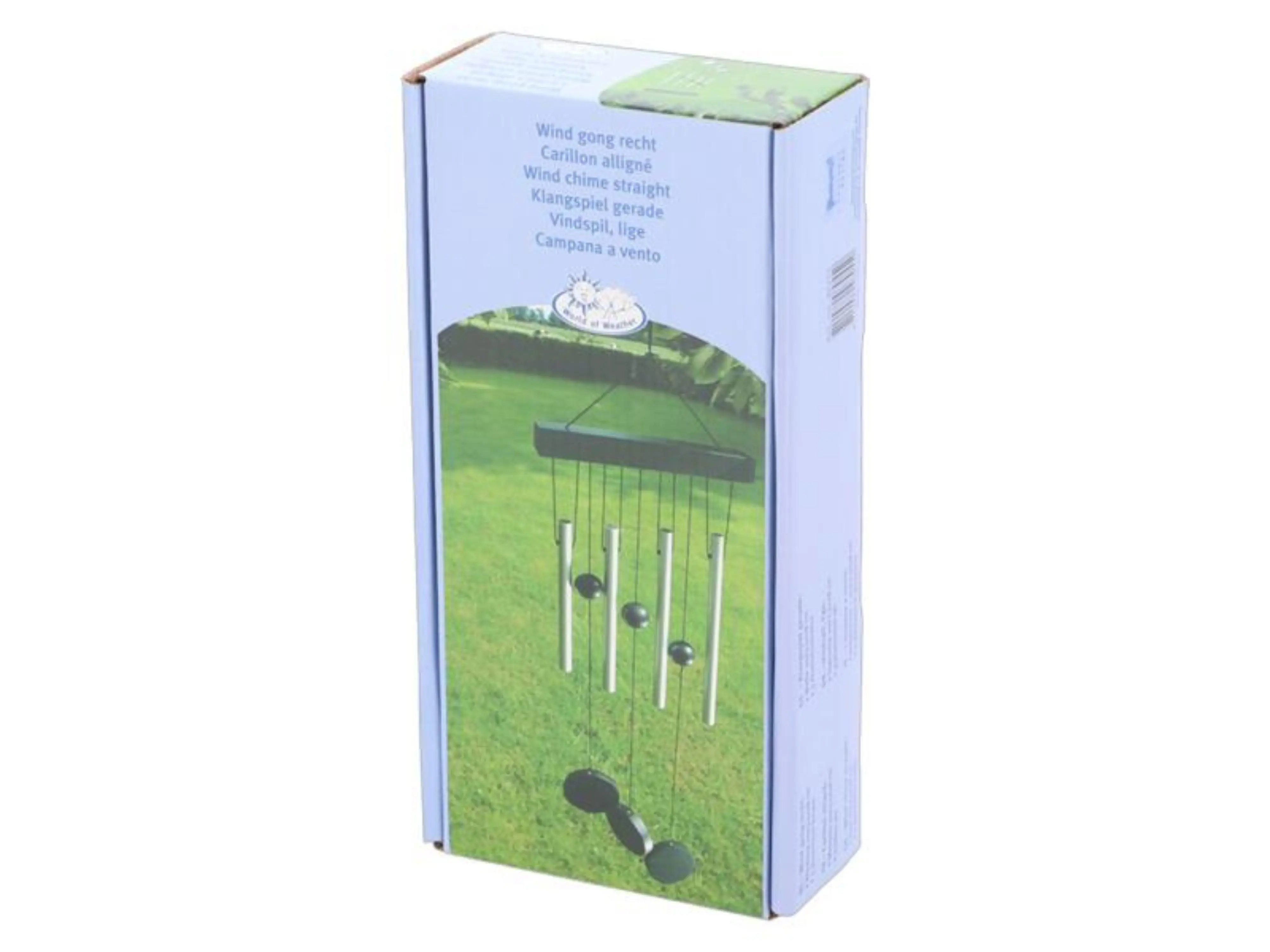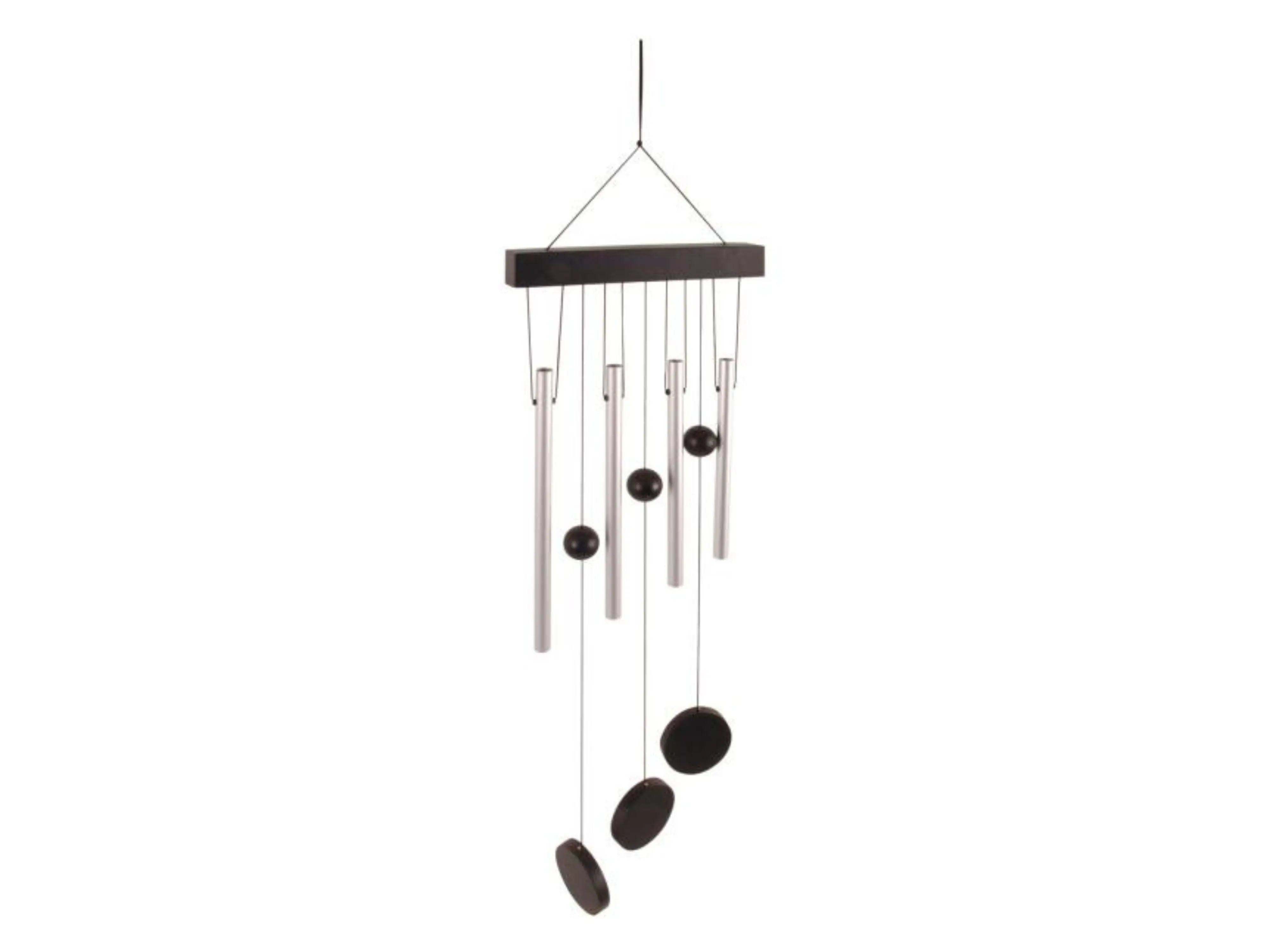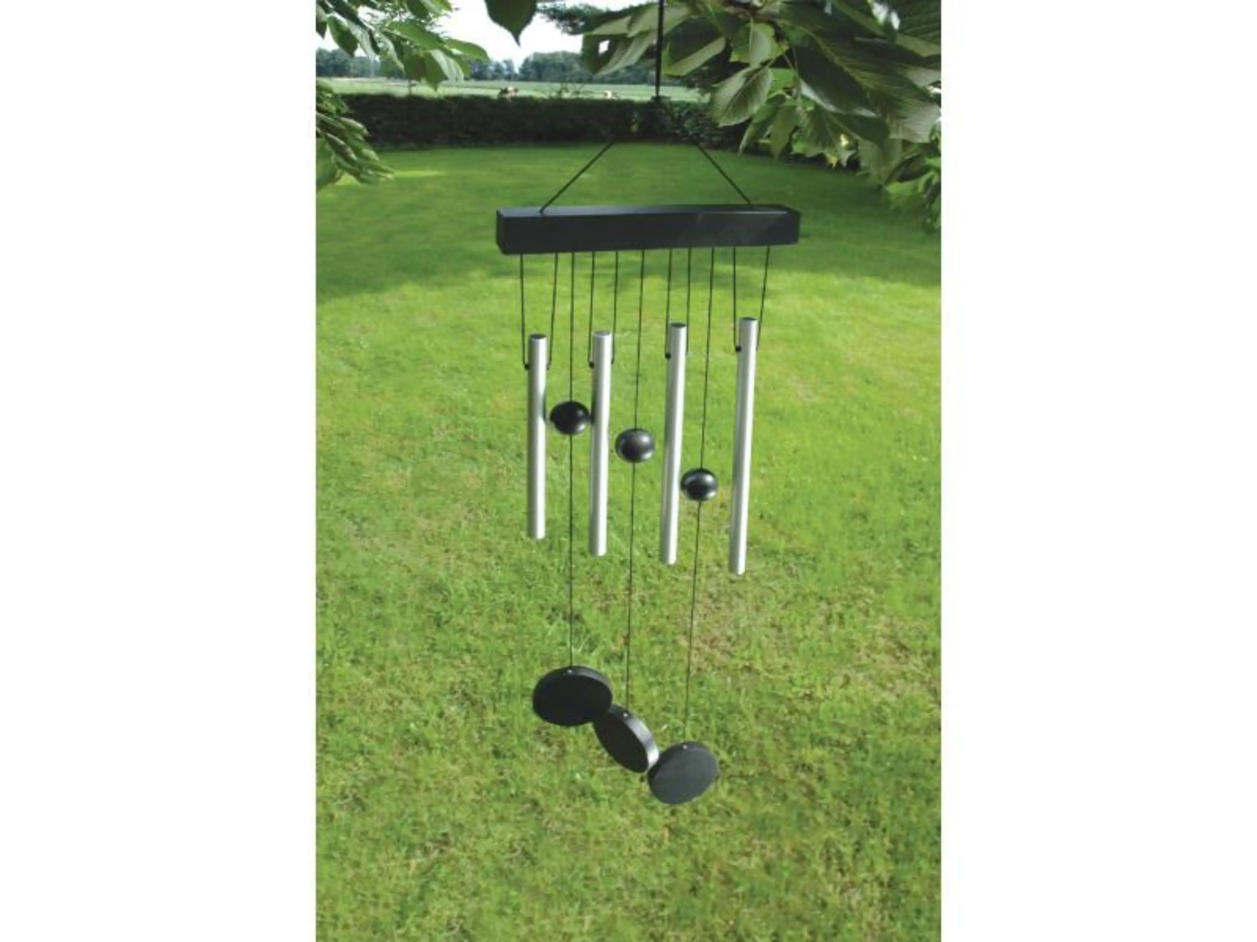 De windgong bestaat uit holle metalen buizen die bij het zachtste zuchtje wind tegen houten balletjes tikken en zo harmonieuze en kalmerende klanken voortbrengen. Dit zorgt voor een ontspannen sfeer in elke ruimte.