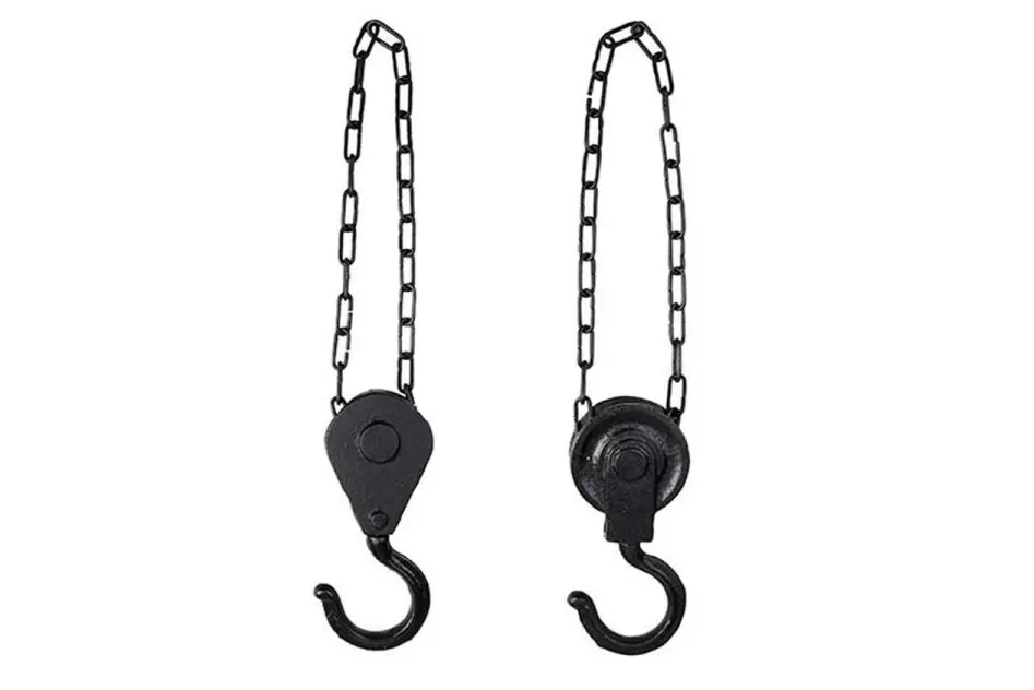 Deze gietijzeren kettingen met haken van Esschert design zijn ideaal om als plantenhangers te gebruiken. Deze industriële lier is perfect voor het ophangen van bijvoorbeeld lantaarns en vogelvoederartikelen, windgongen,...