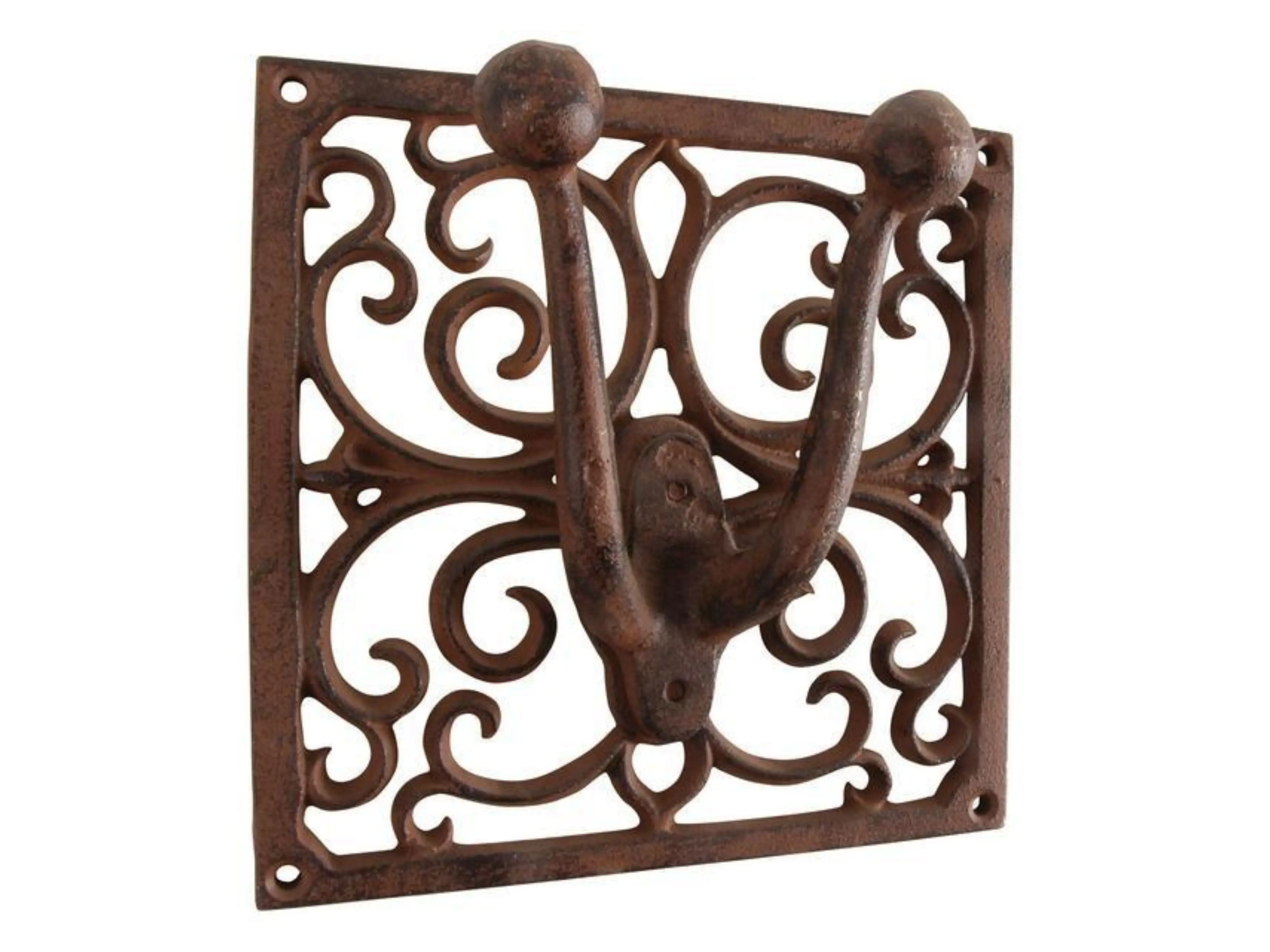 Voeg een vleugje nostalgie en functionaliteit toe aan je tuin of schuur met deze rustiek bruine gietijzeren tuingereedschaphanger. Uitgevoerd in elegante Victoriaanse stijl en voorzien van stevige haken, is deze wandhaak perfect voor het ophangen van tuingereedschap of andere accessoires.